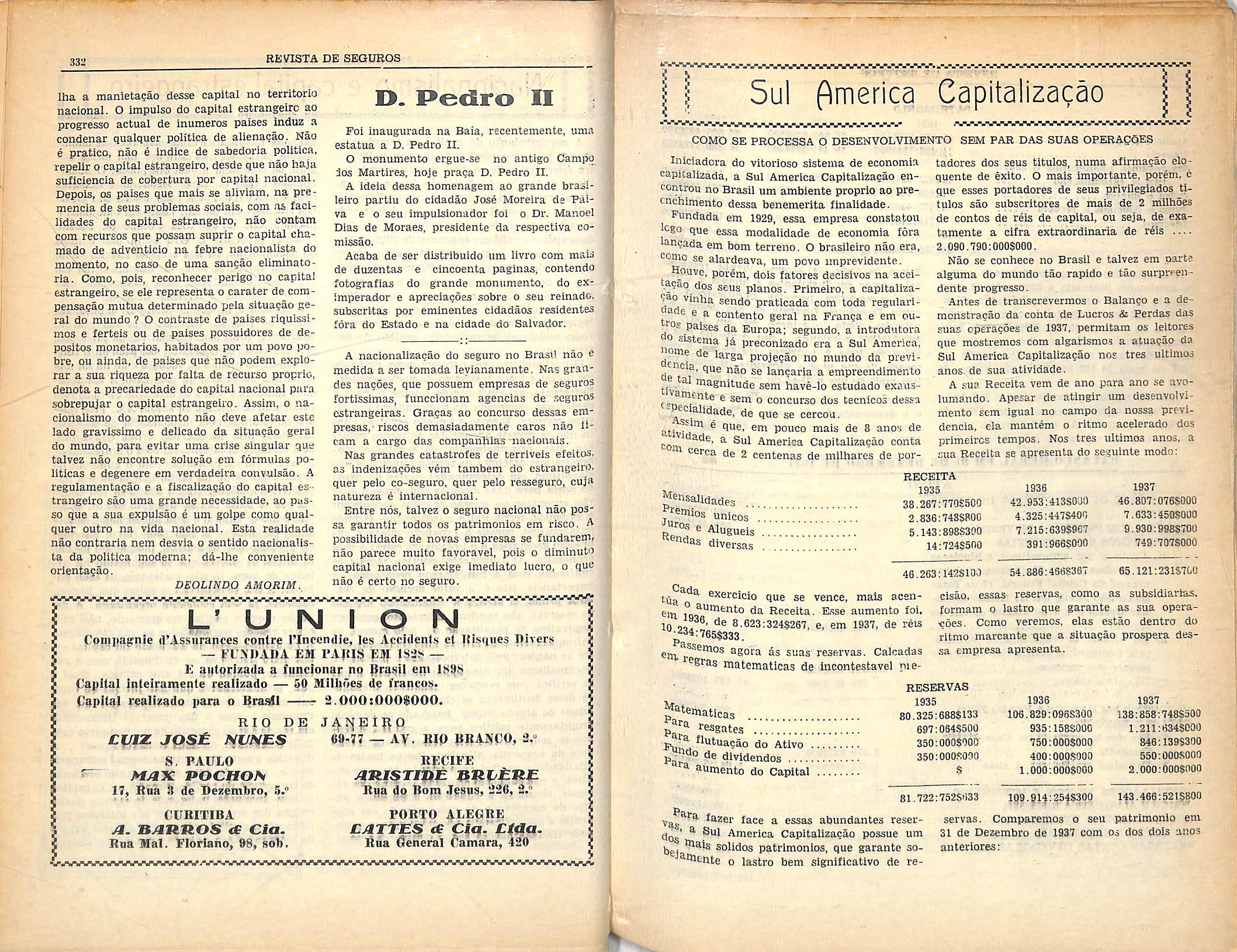 Capital realizado e Reservas . S.OOOrOOOSOOO Receita annual superior a .. 5.500:0l)0$000 Sinistros pagos desde a fundasao 23.000:0095000