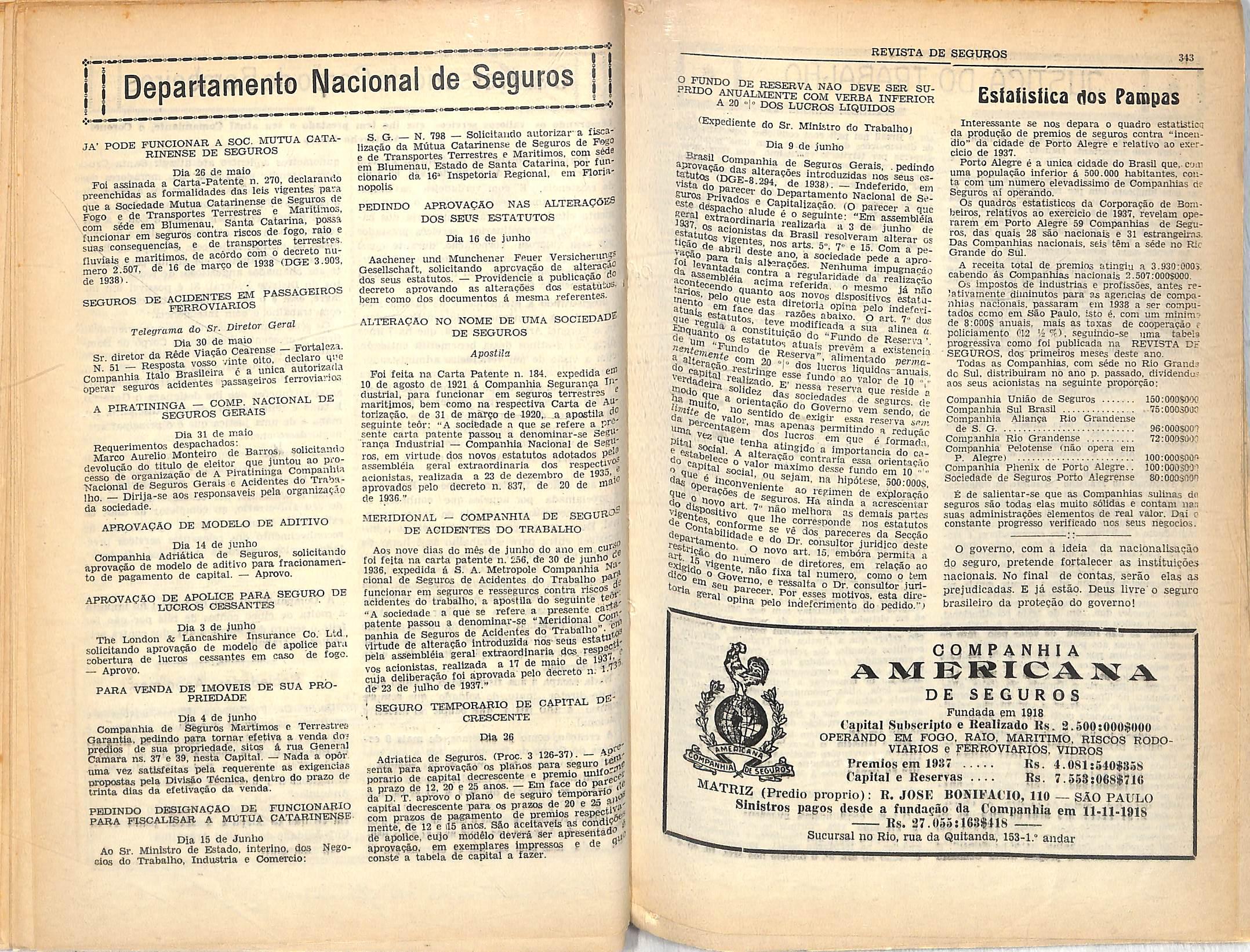 Em assembleia geral da Companhia MinasBrasll, realisada em Belo Horizonte, no dia 3 de malo proximo findo, foram aprovados os seus Estatuto.s e Instalada definitivamente essa empresa de previdencia. Tambem nessa assembleia foram ratiflcados todos os atos praticados pelos incorporadores da Companhia e eleitos o Conselho de Administragao e o Conselho Fiscal, tendo recaldo a escolha para esses postos nos seguintes: — Conselho de Administra^ao — Dr. Chrlstiano Franga Teixeira Guimaraes, Coronel Benjamlm Ferreira Guimaraes, Dr. Sandoval Soares de Azevedo, Dr. Jose Oswaldo de Araujo, Dr. Jose de Magalhaes Pinto, Dr. Carlos Coimbra da Luz, Coronel Joao Antonio Pereira, Coronel Theodorlco Ribeiro de Assis e Coronel Juventino Bias Teixeira; membros efetivos do Conselho^ Fiscal — Dr. Jose Procopio Teixeira, Dr, Sebastiao Dayreil de Lima, Dr. Alberto Wood.s Soares, Dr. Dario Gongalves de Souza e Romualdo Cangado Netto; e suplentes — Dr. Honorio Hermeto Correia da Costa, Coronel Mario Campos e Silva, Coronel Faustino Assumpgao. Dr. Otaviano de Almeida e Dr. Jose Americo Bahia Mascarenhas.