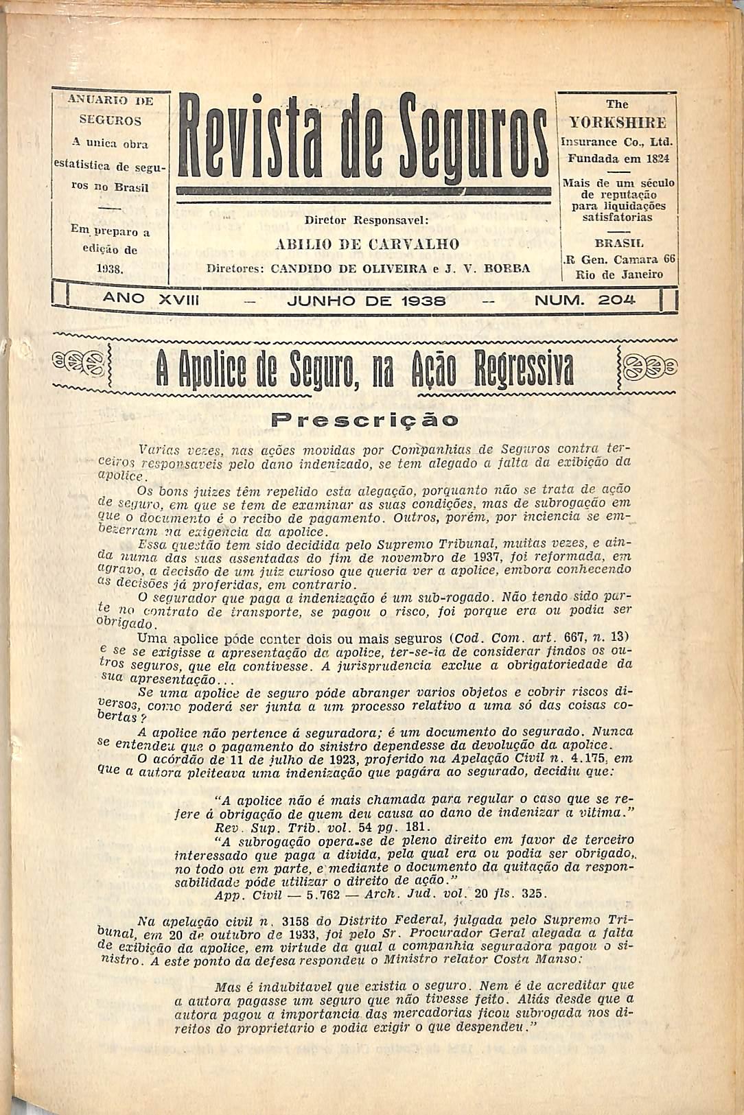 Essa qiiestdo tern sido decidida pelo Supremo Tribunal, muitas vezes, e ain<^2 7iitma das suas assentadas do iim de novembro de 1937, joi reformada, em t'fiTono, a decisao de um juiz curioso que queria ver a apolice, embora conhecendo decisoes jd p^'oferidas, em contrario.
