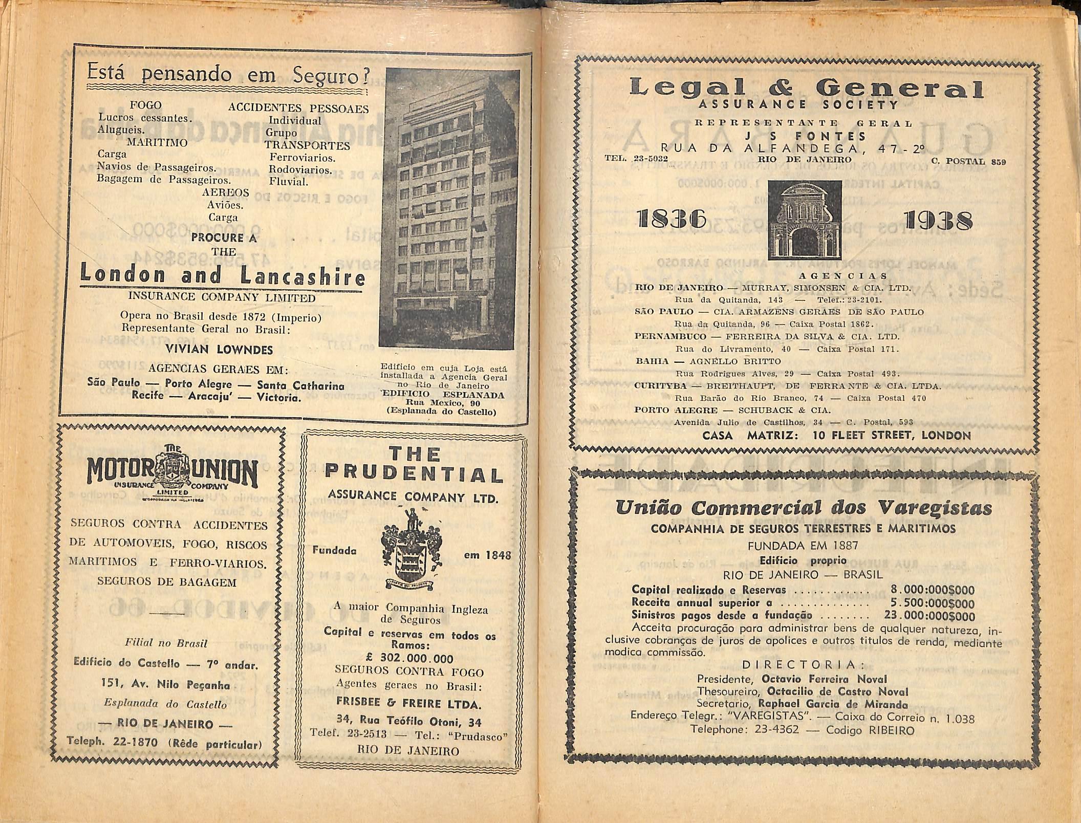 Obra eminentemente pratlca para aferlr ns posaiblliilades do iiosso seguro e da OapitaJlzaQao, ANUARIO DE SEGUROS publlca us esuuisilcas complotas dessas ativldades aselni como os seus balan^os de 1037. al^m de outros dados' quo posslbilitam o conhecimento da previdencia nacional.