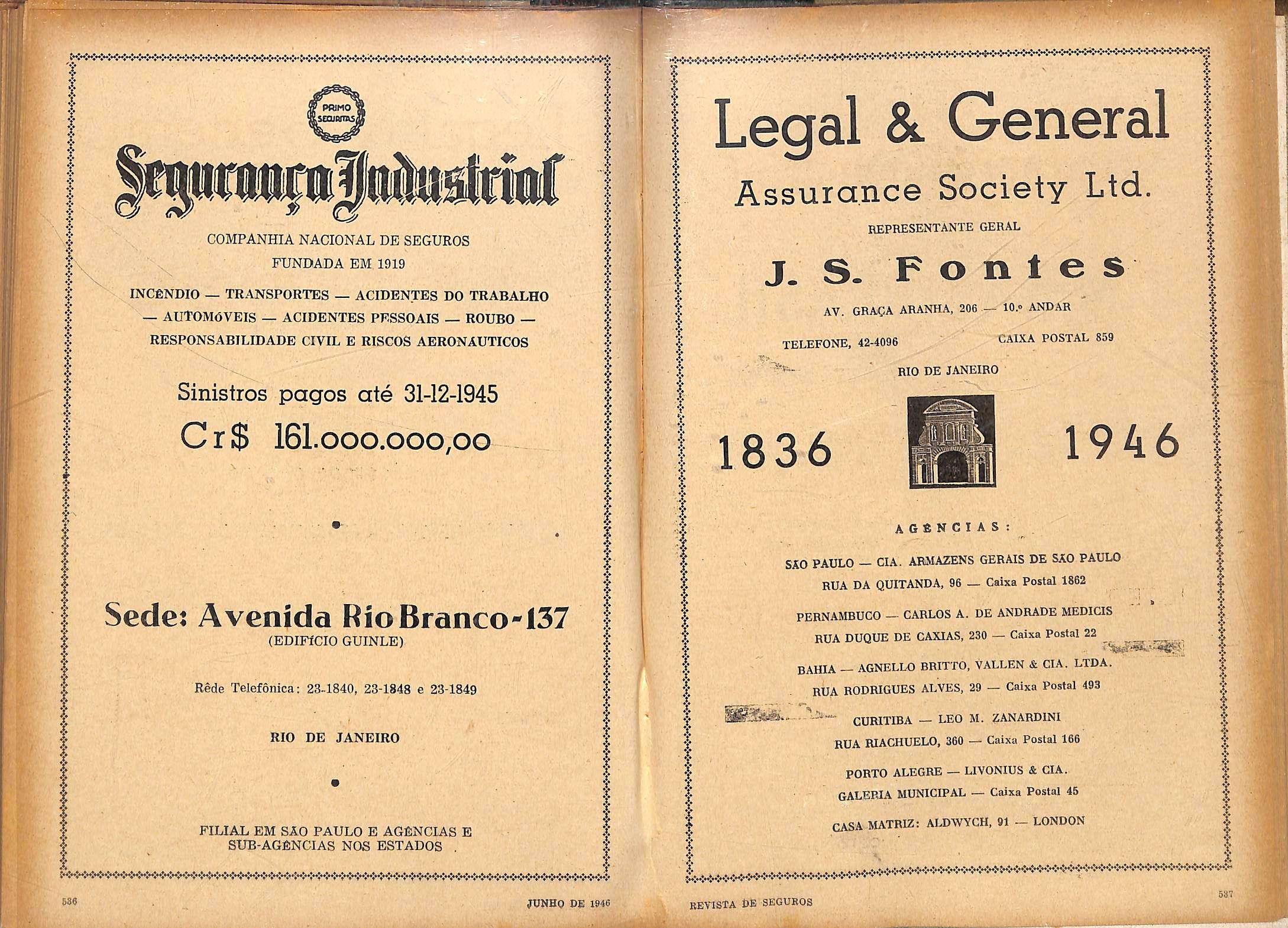-VPT' 'i.n.wjiw ^"1• ^K-<-K-x*<-:-:~:~:-:"X~x~X">-5»:-x~x-x-:~;-K-:-:"K-:~:~:~:-:->'H-K-:-X":"X'<":-:~:-x~:~x->-x~:-x~>x-:' I I I •k I X I I I t I I i I X X i X '4 4 T 4. 1 i { PRiMO uQjBfms k COMPANHIA NACIONAL DE SEGUROS PUNDADA EM 1919 INCfiNDIO — TRANSPORTES — ACIDENTES DO TRABALHO — AUT0M6VEIS — ACIDENTES PFSSOAIS — ROUBO RESPONSABILIDADE CIVIL E RISCOS AERONAUTICOS Sinistros pagos ate 31-12-1945 Cr$ 161.000.000,00 Sede: Avenida RioBranco-137 (EDIFfCIO GUINLE) Rede Telefonica: 23-1840, 23-1848 e 23-1849 RIO DE JANEIRO FILIAL EM SAO PAULO E AGfiNCIAS E SUB-AGfiNCIAS NOS ESTADOS , I ■i i I ..i i I I i I i I I I I I X I I ! I ~:,^»<V<~:~X«^*X'<'*X"X"X-X**J-<>'X"X"X*-X"X-X~X~X~X~X~X-X-X"X"X~X''X~X~X"X"X~X* 686 JUNHQ DE I I 1846 X 4 I I f I X 1 I r I I I I 1 I X 4 ± I 4 i.