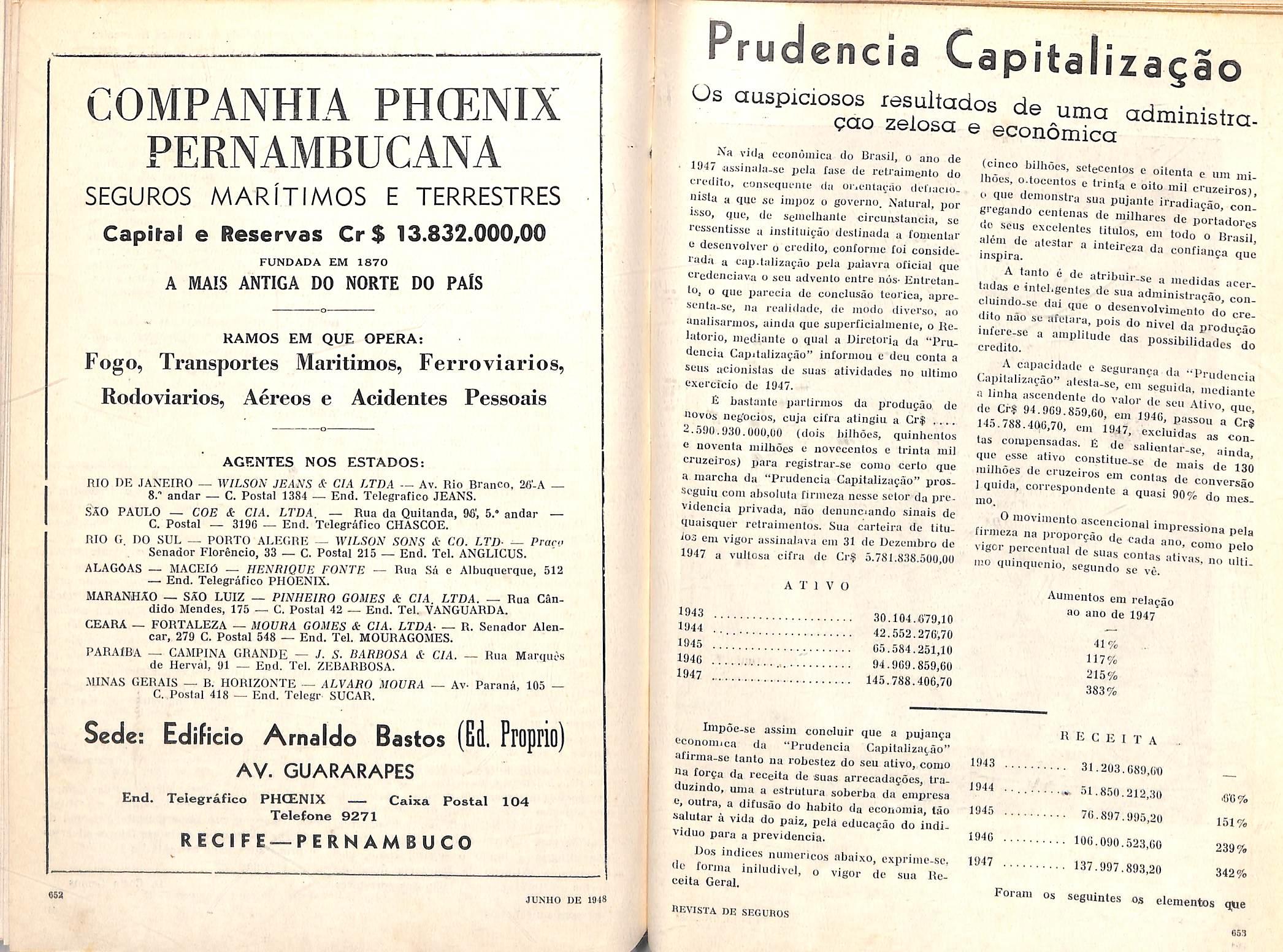 Lilorol ? '<73 Dia do Seguro 171 Direito (0) 10' Direito Comerdal Maritime 399 Direito dos Componhios de Segvros 489 Dorivol Torret 31' Etonomio 915 Economlo e Seguro <59 Elel^oes do JRB 274 e 3S2 Em torno de umo espolia;ao que se esbo;a 173 Embalagem e o Segurd (A) 319 Eqvipara;ao dot seciedodes de copltolizafao oes boneos 345 Equilotivo ,Ter., Acid, e Tronsportes S/A 496 £sl6 ehegondo a horo «H» 651 Estodos Unidos — Componhio de Seguros 701 Exclusividode, por que? 131 Exonero^oes 416 Expedienle do DNSPC 262 f Polso morte 393 Folsos fiscois 137 Fotos do tnor 455 Fideiidode —■ Comp. de Segs. Gerois 505 Fogueiros voodoros 671 Forloleio (A) — Comp. Noe. de Seguroi 517 Froudes contra o Seguro 235 Furtos de mercodorios 321 G Guoroni — Comp. de Seguros 515 Guerro lemida (A) 603 H Hobitos do -vido 539 Hislorio inglezo {Umo) 130 Historico do Seguro r<0 Brosil 643 Horos iocois correspondenles oo meio dio no Rio de Janeiro 392