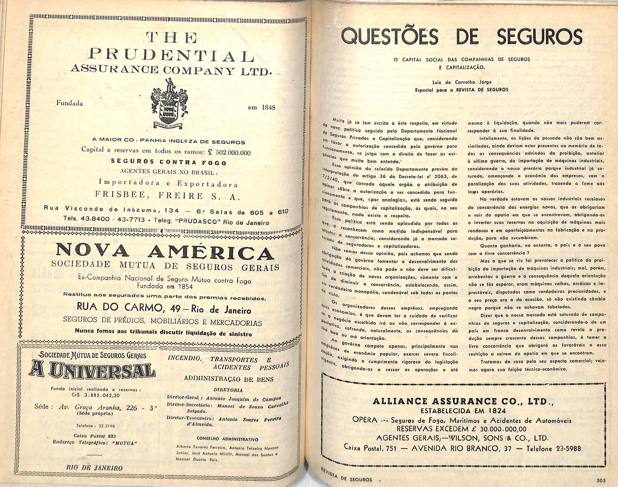 FERROVTARI^^ 1 1 SEGUROS DE BAGAGE:^ em 1846 = H Q A maior Companhia Inglesa de Seguioi Q = Capital e reservas em todos os ranios: E = £ 502.000.000 = a SEGUROS CONTRA FOGO e S Agenlet gerais no Bras!!: = 1 Importadora e Exportadora E SFRISBEE. FREIRE S. A.S RUA Vise. INHAUMA I34.6' Sofas de 605 a 610 Q Tels-: 43-8400 - 43-7713 — Tel. «PRUDA5CO» 3 E RIO DE JANEIRO = FILIAL NO BRASIL Edificio Castelo — 7." andar 151, Av. Nile Pe?anha Esplanade do Castelo RIO DE JANEIRO Teief. 22-1870 (Rede particula'") -.iifiiiiiiiC]iiiiiiiiiiiiniiiiiiiMtii{iiiitiiiiiiiiC]iiMiiiiiiiic]iiiiiii:= ,734 siiiiiiiiiiiitiiiiiiiiMiiiciifiiiiiiiiiiciiiiiiiiiiiiiniiiiiiiii'"tjH/•