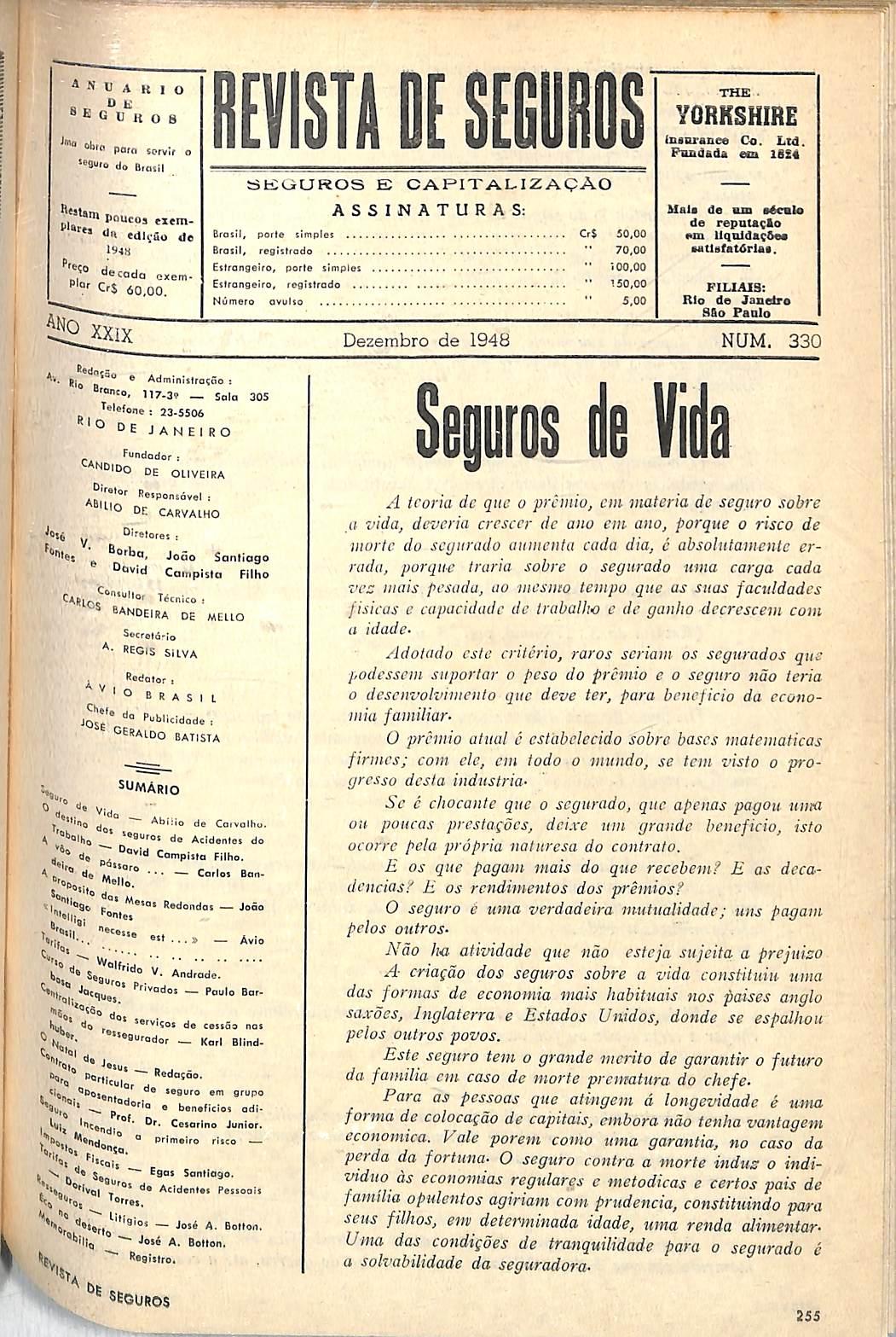 0 seguro de vida diminue os efeitos da morte- Nao indenisa. Apenas dd certa soma para amparar a economia familiar. ^ Disse S. Paulo que o ultimo grande inimigo que o homcm tera de veneer sera a morte. 0 honmn so vencc a morte pela pratica do Bern.