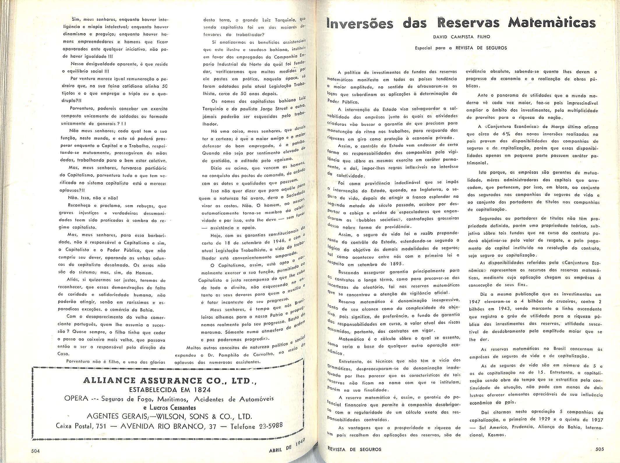 No iinporlonle feslo realizoda em Salvador, pelo Componhio do Seguros Aiion^o da Bohio, em homenogcm oos cinqucnia onos de Iroboiho, oil, do olual Direlor Jose do Abreu, folou o Dr. Pomphiio de Corvolho, presldenlc' do referldo Componhia, Do seu discurso cxIroimos oiguns conceitos que nos porecerom oportunot.