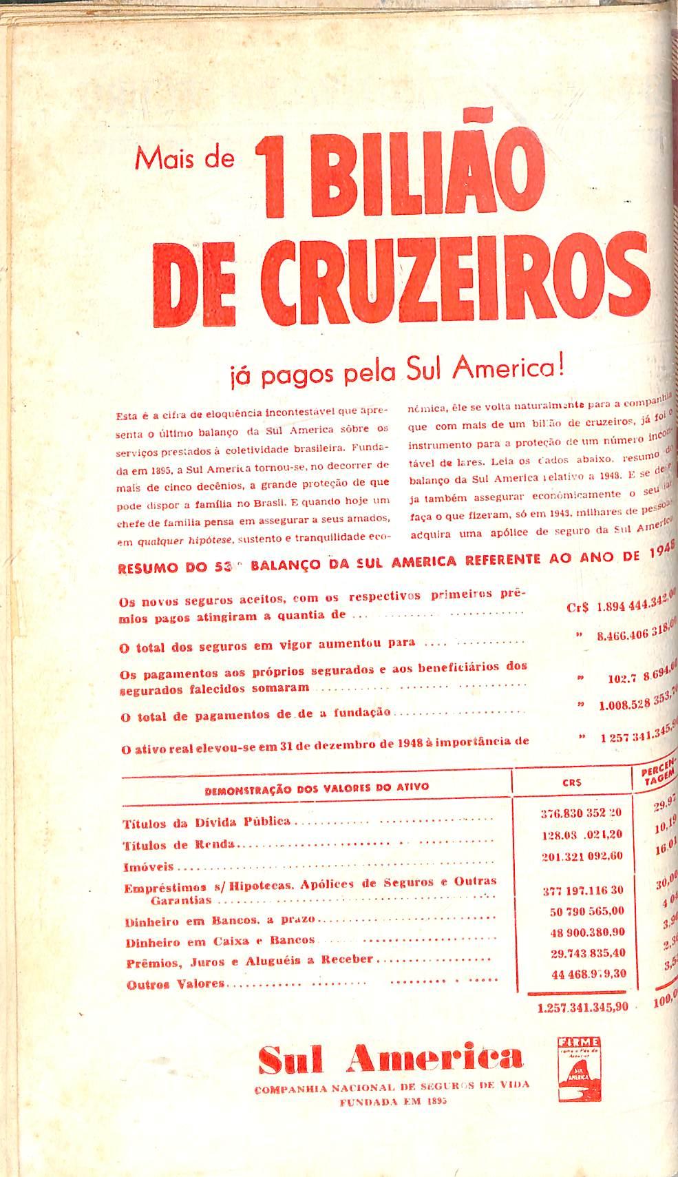 EiU 6 s c'fia <1« eloquencia Incontestavel que apreseiita o uUlnio Balan?o rta 3ul America sobie os servifOS presiados a coletividade braslleira. fundsda em 1893, a SUl America tornou-se, no decorrer de mais de clneo dec6nios. a grande piote?iio de que pode ilispor a lamllla no Brasll. E quancio hoje urn c'hefe de lamilla pensa em assegurar a seus amados, em qimlquer hipOtese.•<ustpnto e tranqiillidade ei-<i-