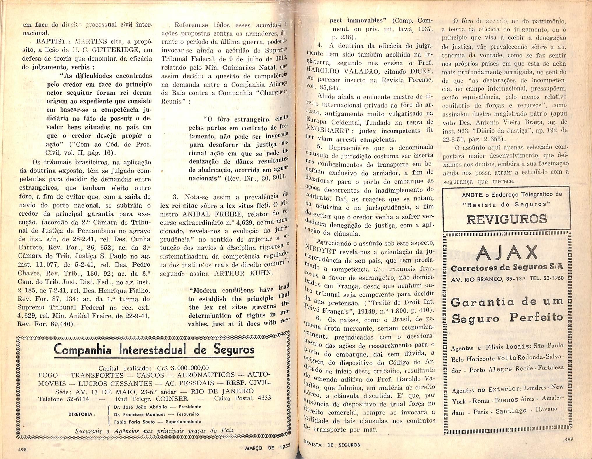 Seguros de Incendio, Transportes e Acidentes Pessoais DADOS ESTATISTICOS DO QUINQUENIO 1946/1950 1946 1947 1948 1949 1950 CAPITAL RECEITA RESERVAS SINISTROS ATIVO 9.000.000.00 94.157.374,30101.512.671,80 22.706.390,40160.410.524,30 9.000.000,00 96.135.219,70 108.693.488,80 28.129.151,70 192.412.626,40 18.000.000,00 103.679.990,40 106.810.181,20 27.703.072,00 203.440.779,60 18.000.000,00 105.111.561,70 113.363.653,30 19.141.651,40 207.105.942,50 18.000.000,00 115.689.364,60 120.691.791,10 22.088.879,50 228.855.420,30 SWe:-SALVADOR, Estado da Bahia Diretores; Dr. Pamphilo Pedreira Freire de Carvalho — Presidente Dr. Francisco de Sa Anisio Massorra Dr. Joaquim Barreto de Araujo Jose Abreu Agenda Gera! no Rio de Janeiro: RUA DO OUVIDOR, 66/68 Telefone: 43-0800 Gerente: Arnaldo Gross
