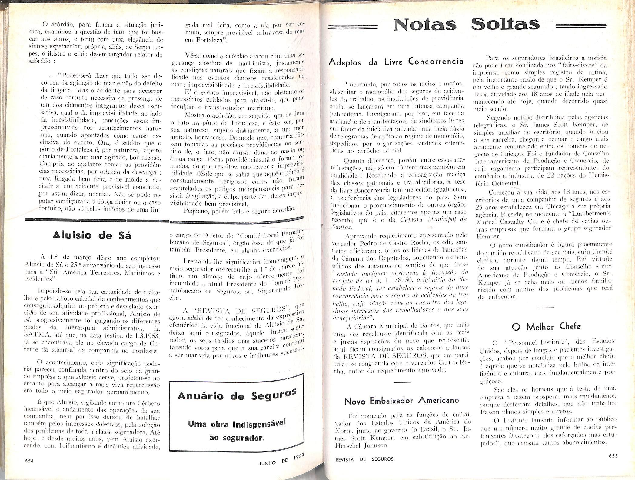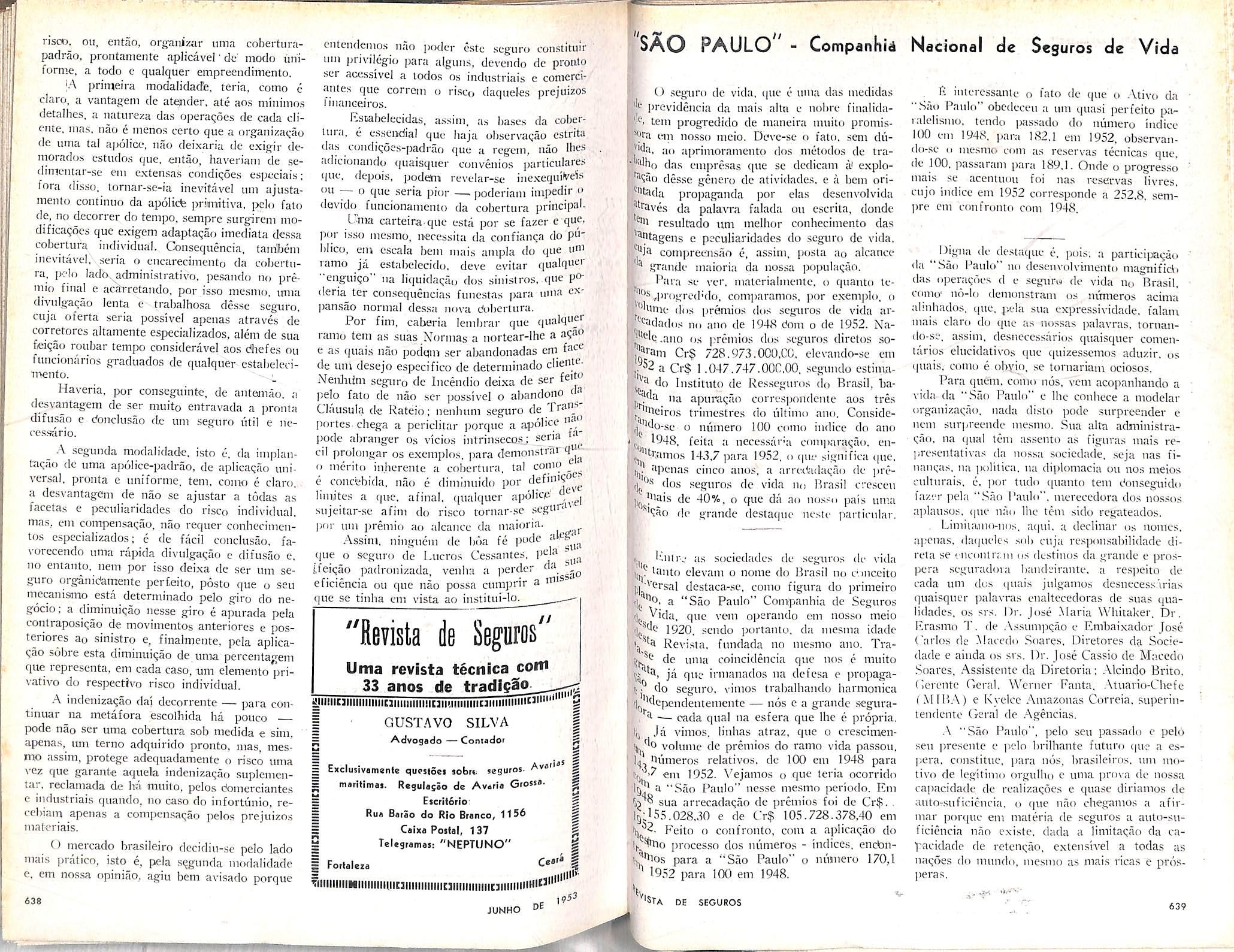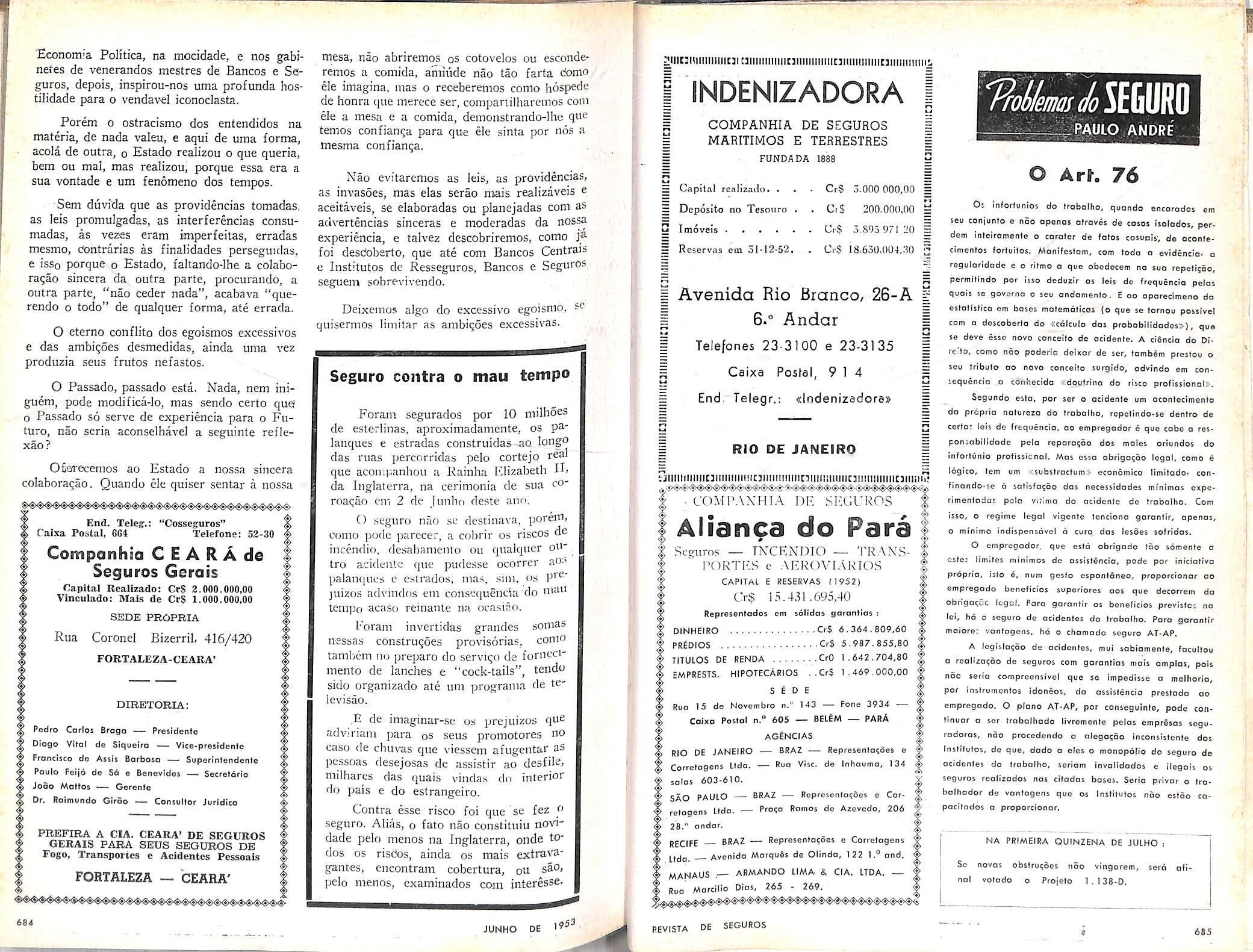 Companhia Nacioiuii de Seguros referenlea 11)52.indica uma cirt'aeiov te: OS ciivei-sos pagamentos (sinis liqiiidagoes e lucros) a segurados ei neficiiirios alcaiigaram CrS 111.50S.1' Esles muneros corresponcieni 5 ooHj absoluta com que a Sul America aos sens compromissos, e tainbi iriam a iarga soma de beneficios brasileira. A coiitiaiiga do pii ' a qual nao teria sido poss.'v 1 volvinieuto du Sui America. fato de que essa empresa cons real patrimOnio da coietividadi ' ciente que nos reliramos ao re. j balango dc 1952. onde os novos ses) Utingirnni o impressioiiante volui" CrS 4.208.477.078,0(1— mais de" ' sobre os resultados de 195' j eslas razoes. confie tambem ' America. Iiistitiia urn seg'U y; garantiiuio uos seus vim lui j e traiiquilidade. ,