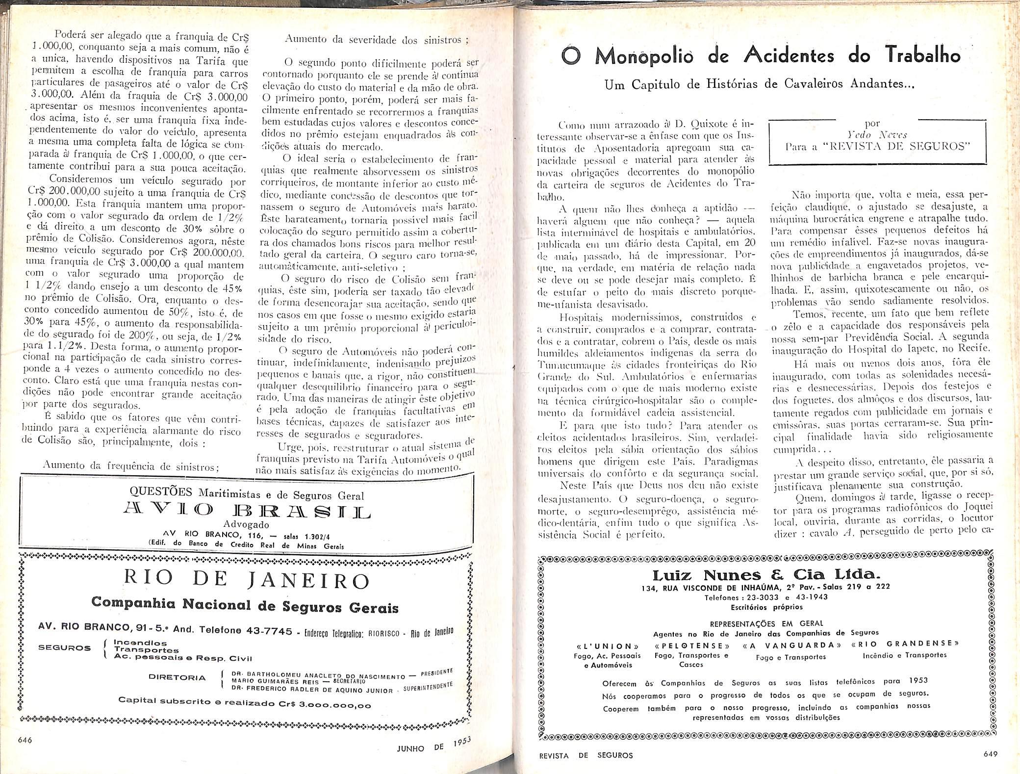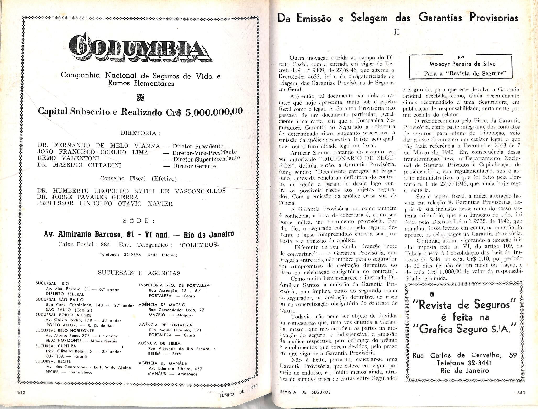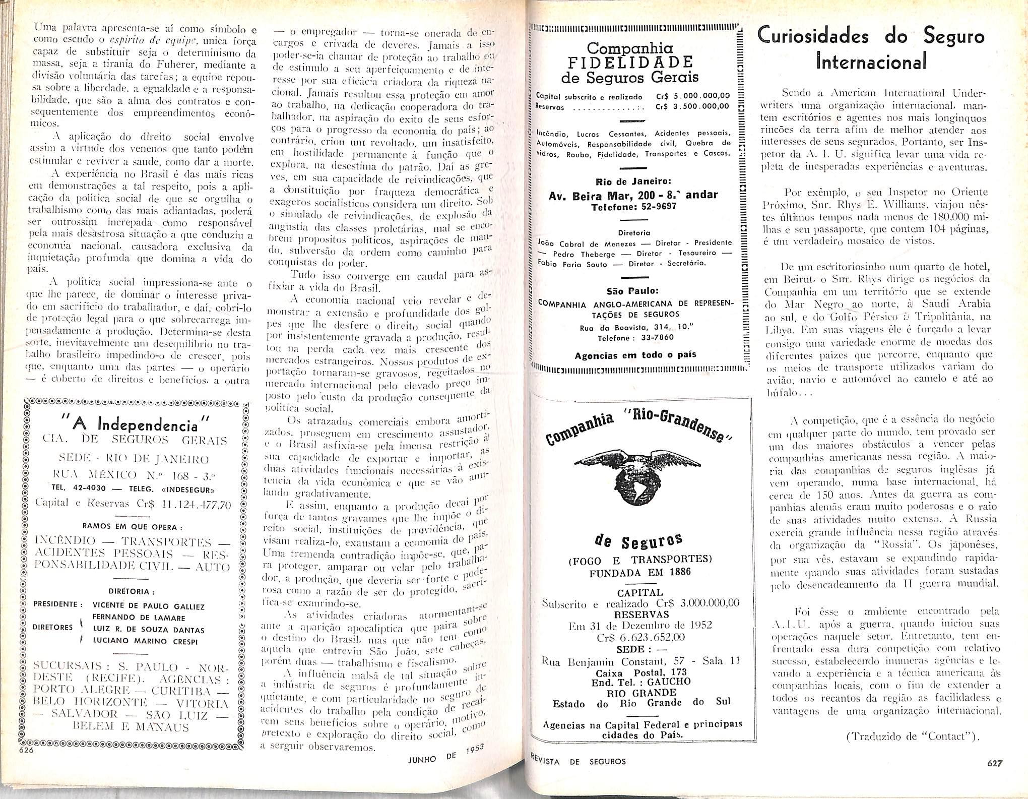 Como sc ve pelo lumario ocimo tronscrito, o trobolha em quesloo e de gronde inleresse paro todos oqueles quo m'ilitom nos mcios segurodores, e muito parlicuiGrmenIc oos que se dedicom ao resseguro no exterior, Sua consulla e, pois, muito recomendavel.