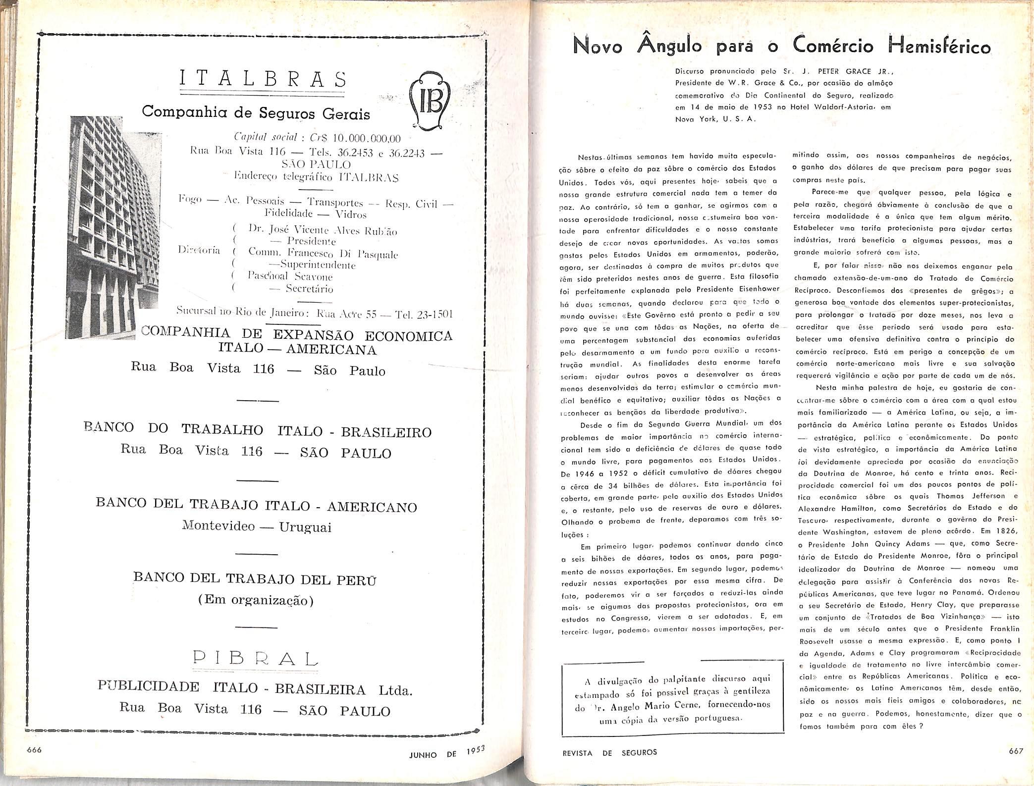 Trala-sc de obra de lorgo folego, editodo em Esponhol e ingles, cslando a materia ncia conlida reportida por sois copilulos — 1," — Discorsos pronunciodos no IV Conferencio Hemisferico de Seguros, 2° — O seguro privodo em Cuba, com ligeiro hislbrico dos Qlividcdes segurodoros naquclo Republlca. 3" Relogoo dos ccmponhios- motrlzes e agendas, que operom no Republico, nominolo dos presidentes, corretorcs e odvogodos dc emprcsos locals, bem como a rclo^So dos Guloridodes de seguros em vdrios poises do continente; rdlogao dos diretores dos companhios de seguros dos republlcQs Qmerjconos, inclusive Canodd c Anlilhos, Associagdes dc- clossc nomev dos empresos, e multos outros dodos inleressanles. 4. 5° e 6" — Ocupam-se de bancos, movimcnio do bolso e diretorio comercioi.