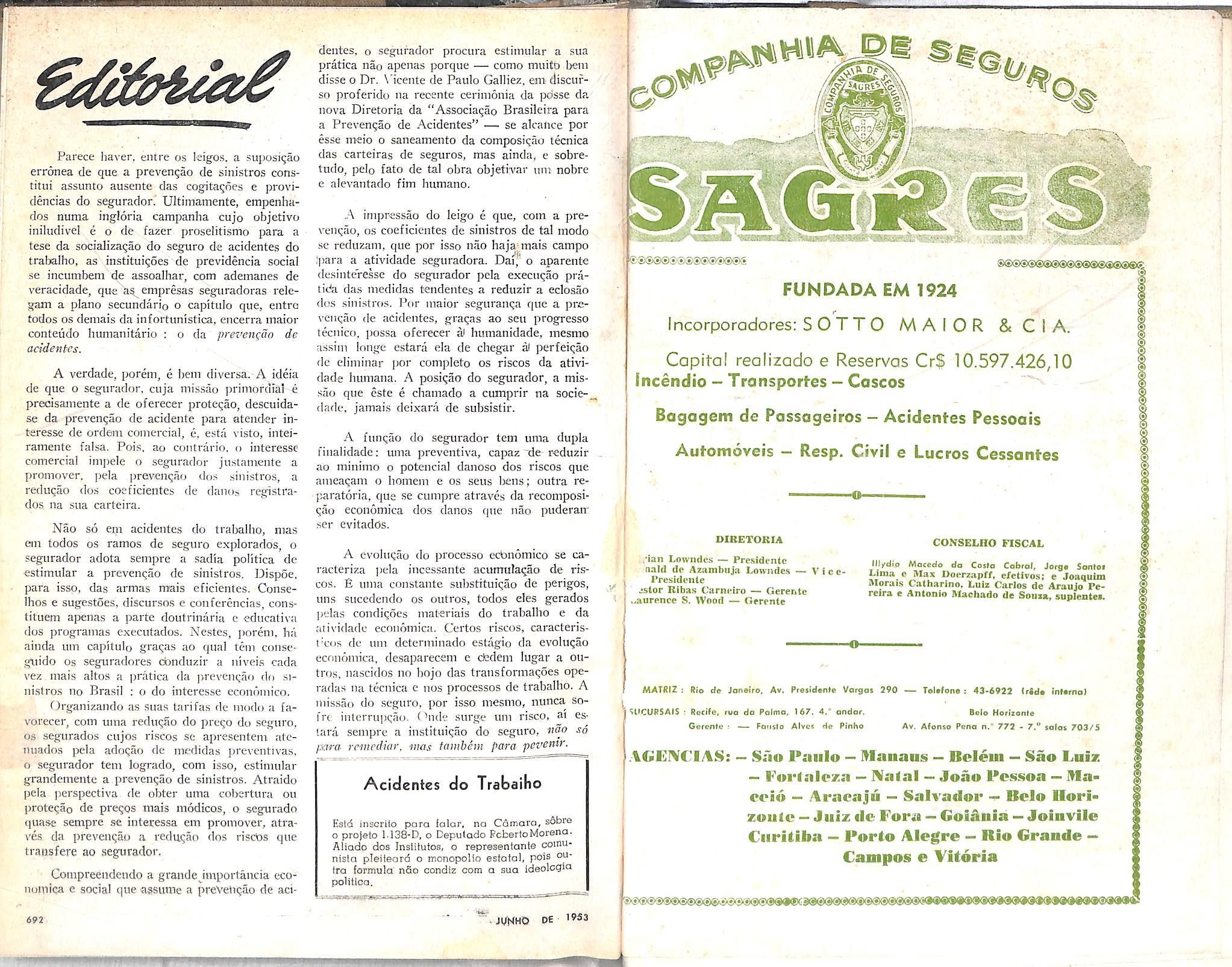 dentes, o segurador procura estimular a sua pratica nlo apenas porque — como muito liem disse o Dr, \"icente de Paulo Galliez. em cliscufso proferido na recentc cerimonia da posse da nova Diretoria da "Associaqao Brasileira para a Prevenqao de Acidentes" — se alcaiice per esse meio o saiieamento da composicao lecnica das carteiras de seguros. mas ainda, c sobretudo, peio fato de tal obra objetivar um nobre e alevantado fim humaiio,