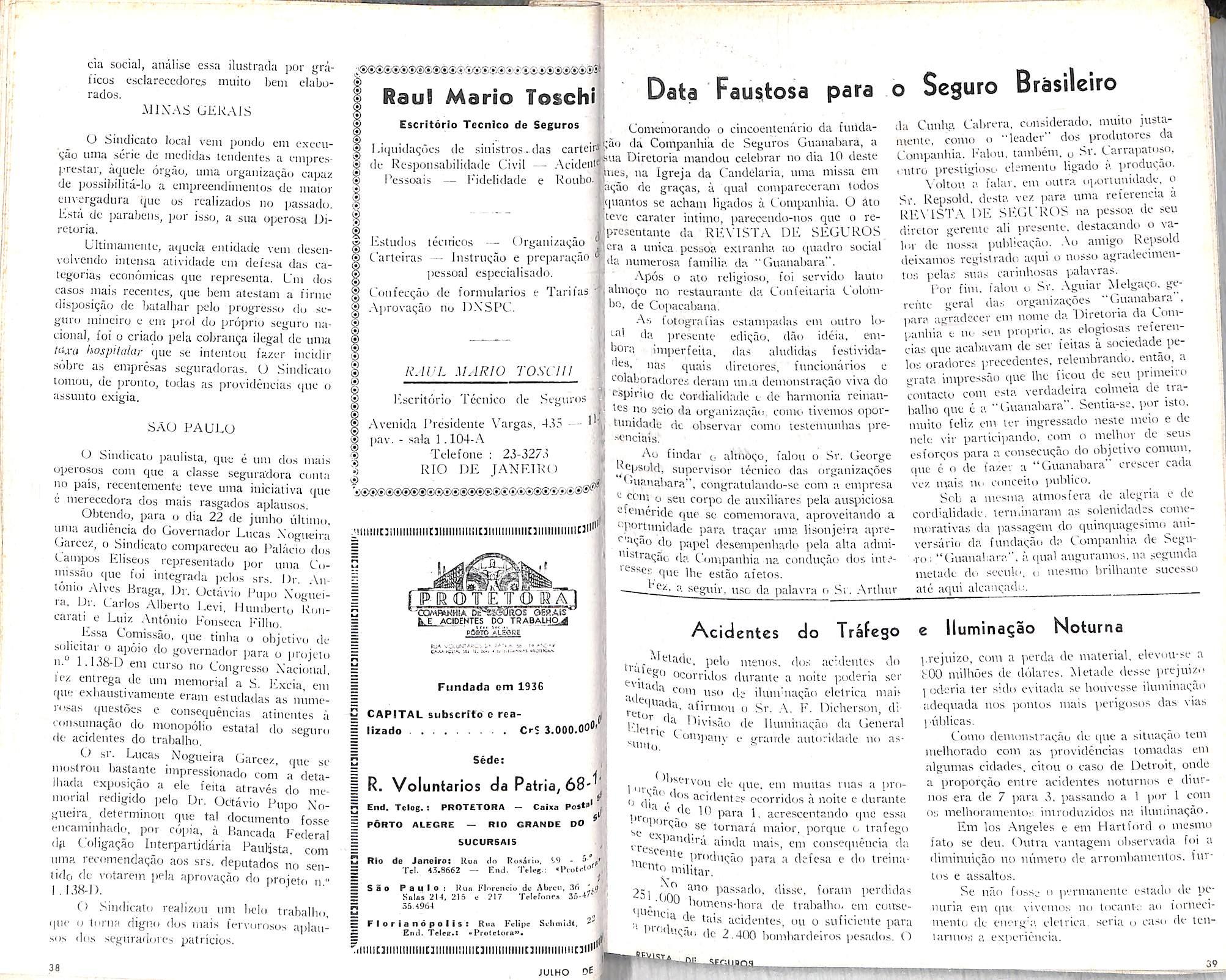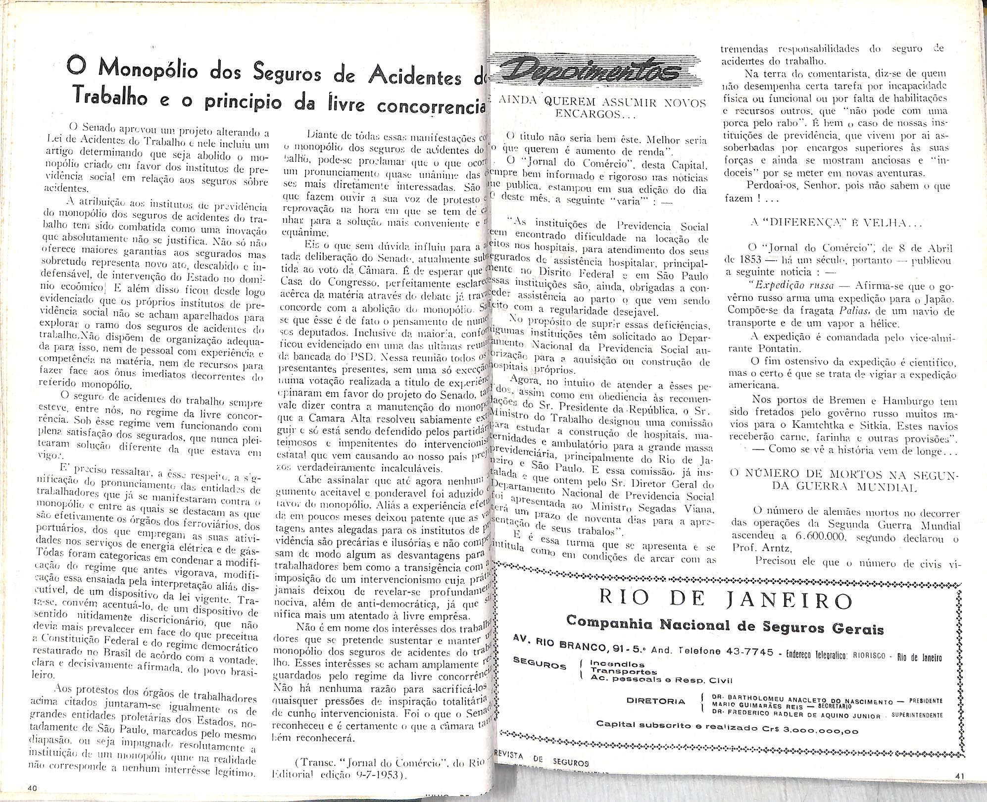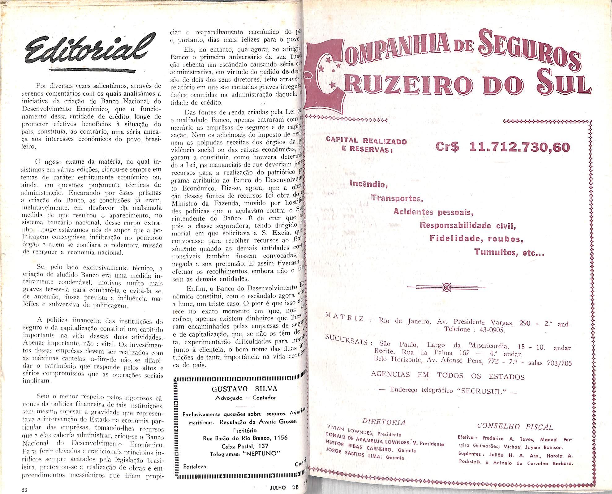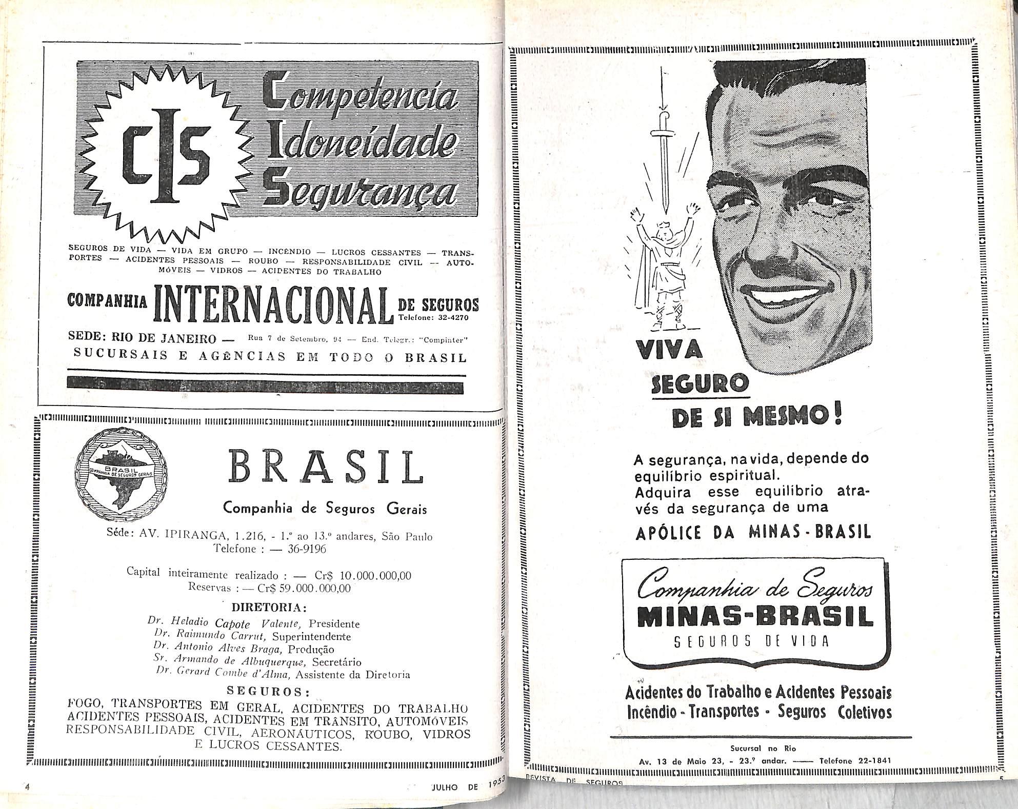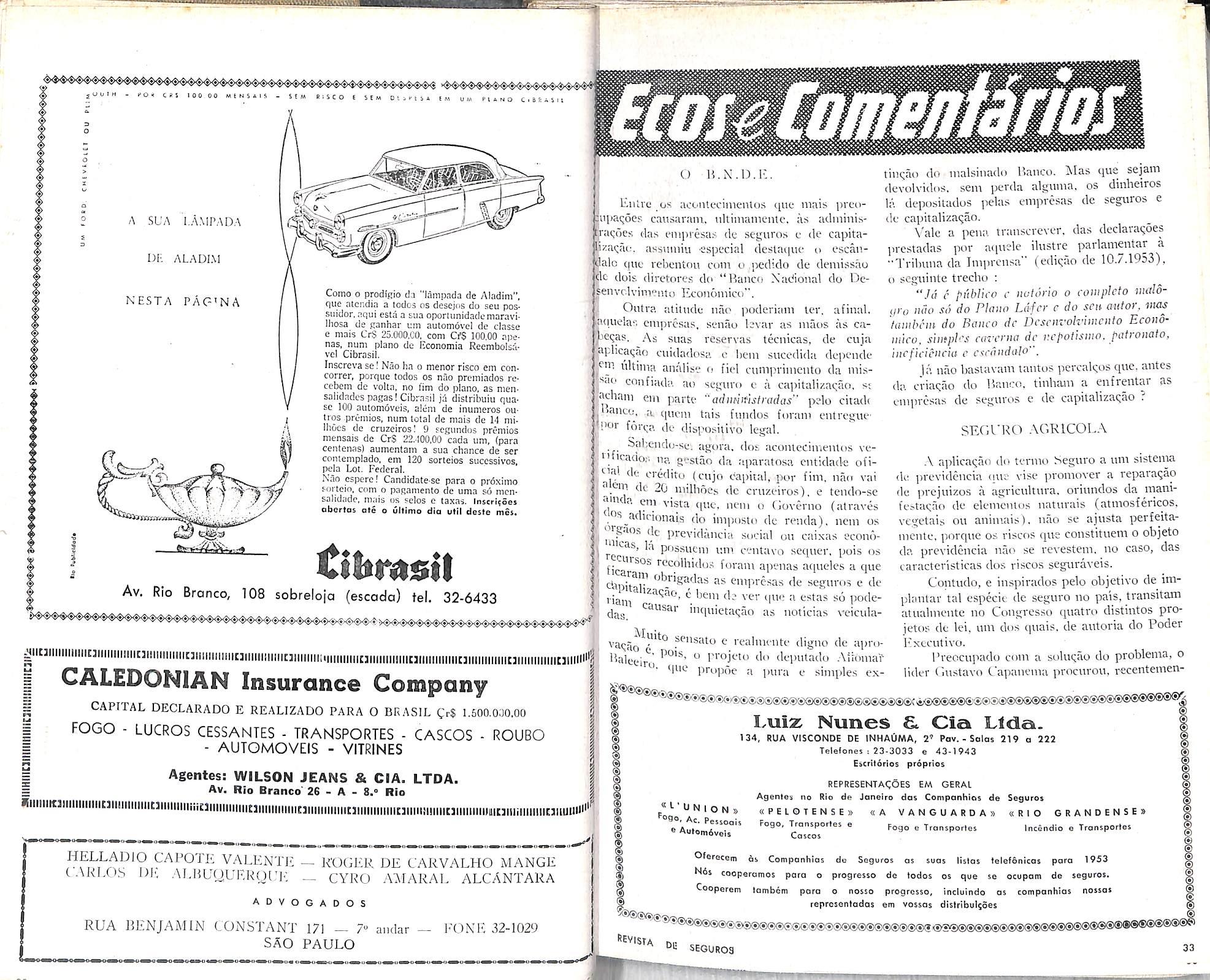 — A Forfoleaio — Componhio Noeionol do Seguros, desto Copital. Decreto n.® 33.028, do 11/6/53. Diario Oficiol do 22/6/53. Copllol oumentodo de 2 1/2 paro 8 milhoes dc cruzeiros.