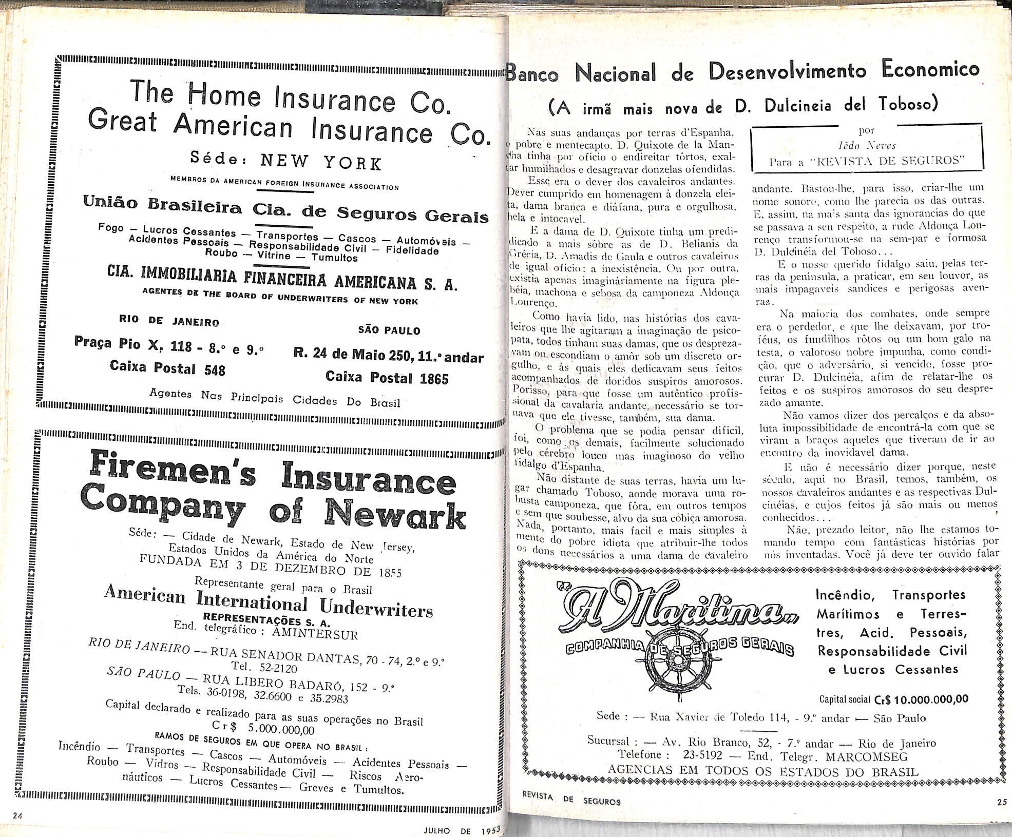 Das fonles de renda criadas pela Lei , o malfadado Banco, apenas entrarain com merario as cmpresas de seguros e de capi^' zaqao. Xem os adicinoais do imposto de reW nem as polpurlas recsitas dos orguos da videncia social ou das caixas economidas, gavani a constituir. como houvera determ' (.iu a Lei, QS mananciais de que deveriam jo' recursos para a realizaqao do patriotico grama atribuido ao Banco do Desenvolvi to Economico. Diz-se, agora, qu-e a ob qao dessas fontes de redursos foi obra do ® Ministro da Fazenda. movido por host"* des poHticas que o aqulavam contra o 5 rintcndente do Banco. £ de crer que pois a dlasse seguradora, tendo dirlgido morial em que solicitava a S. Excia. cnnvocasse para recolher recursos ao sdmente quando as denials entidades cO'' ponsaveis tanibem fnsscm convocadas, negada a sua pretensao. E assini tiveran' efetuar os recolhimentos. embora nao o' ' sem as demais entidades.