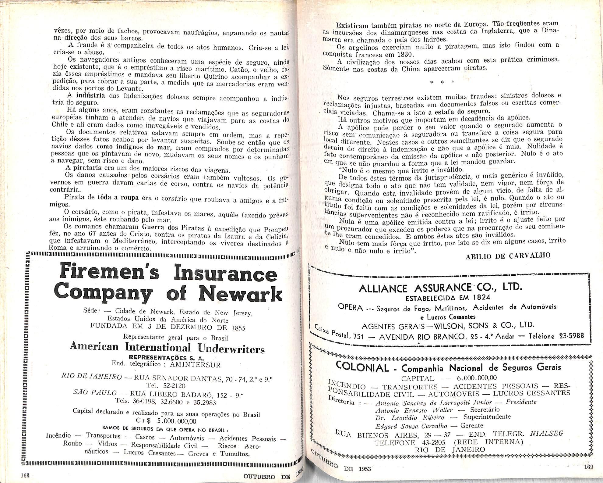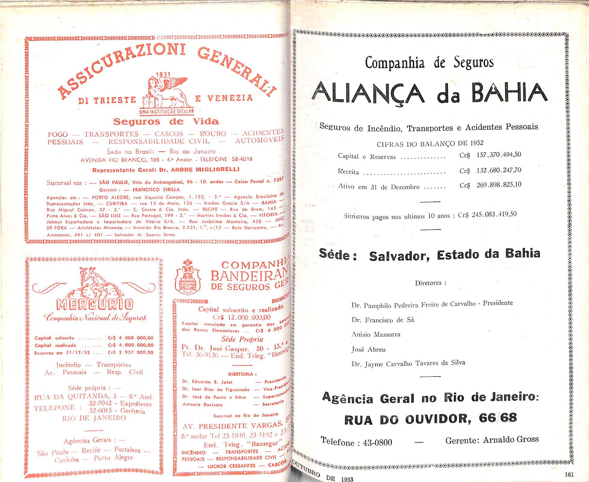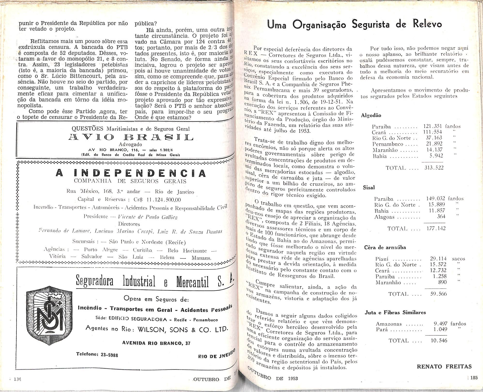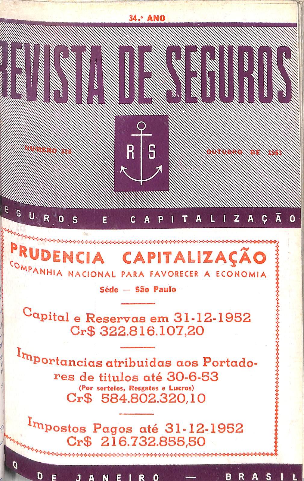 Sejcuros de Incendio. Transportes e Acidentes Pessoais CIFKAS DO BALANgO DE 1952
