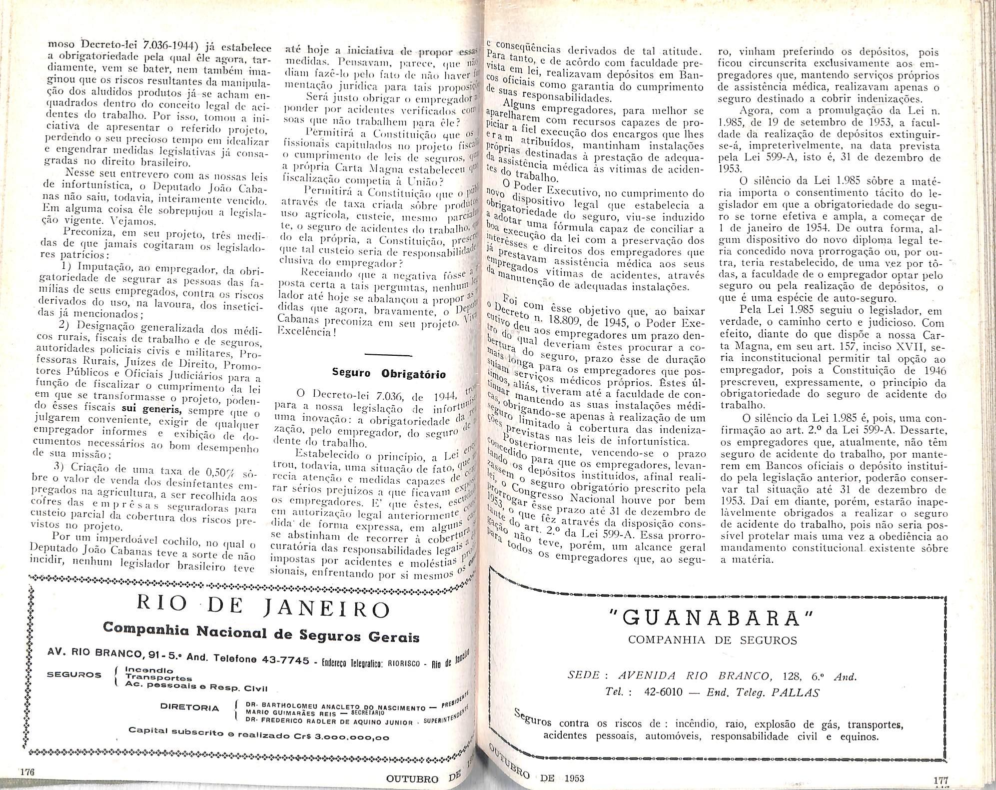 Mai e promulgada a lei que restabelece 0 regime da livre concorrencia na realizagao do seguro de acidentes do trabalho, conjurando assim o raalsinado monopolio autarquico que seria implantado a partir de 1954, surge no Congresso Nacional um projeto de lei que pretende criar para o segurador um "onus"'pesadissimo e, mais do que isso, absolutamente Injuridico. Coincidencia? Talvez. Pode ser.