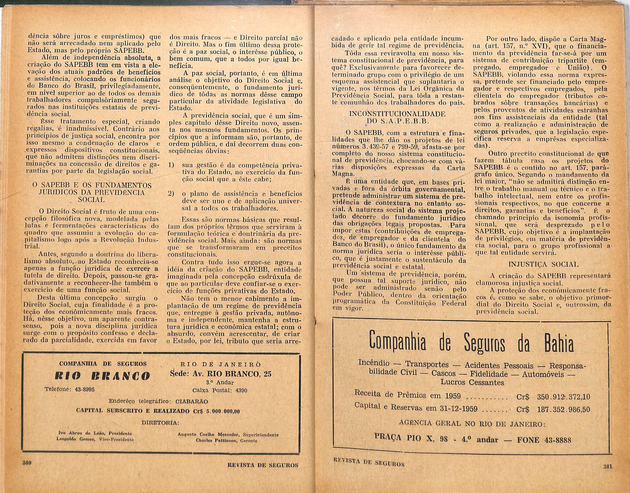 2 — A induslrializacao do Pais no apos-gucrra foi aconipanhada da vealizacao de seguro colelivos por numerosas fahrieas. Assim, os heneficios da previdencia tornaram-sc cxlensivos as fami-