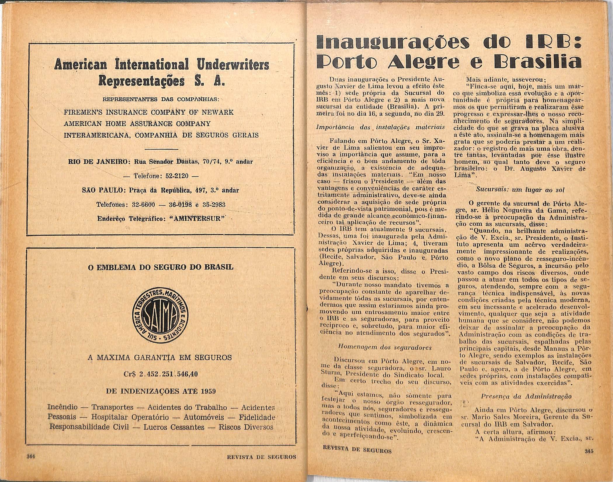 Colocacoes de seguros de todos os ramos no Pals e no Exterior