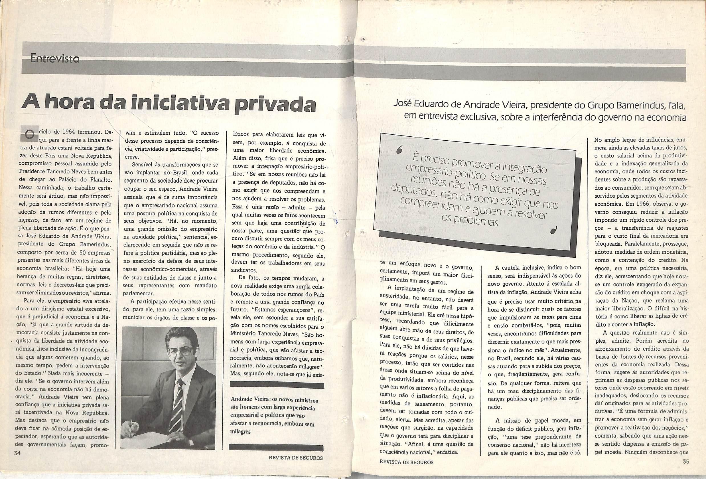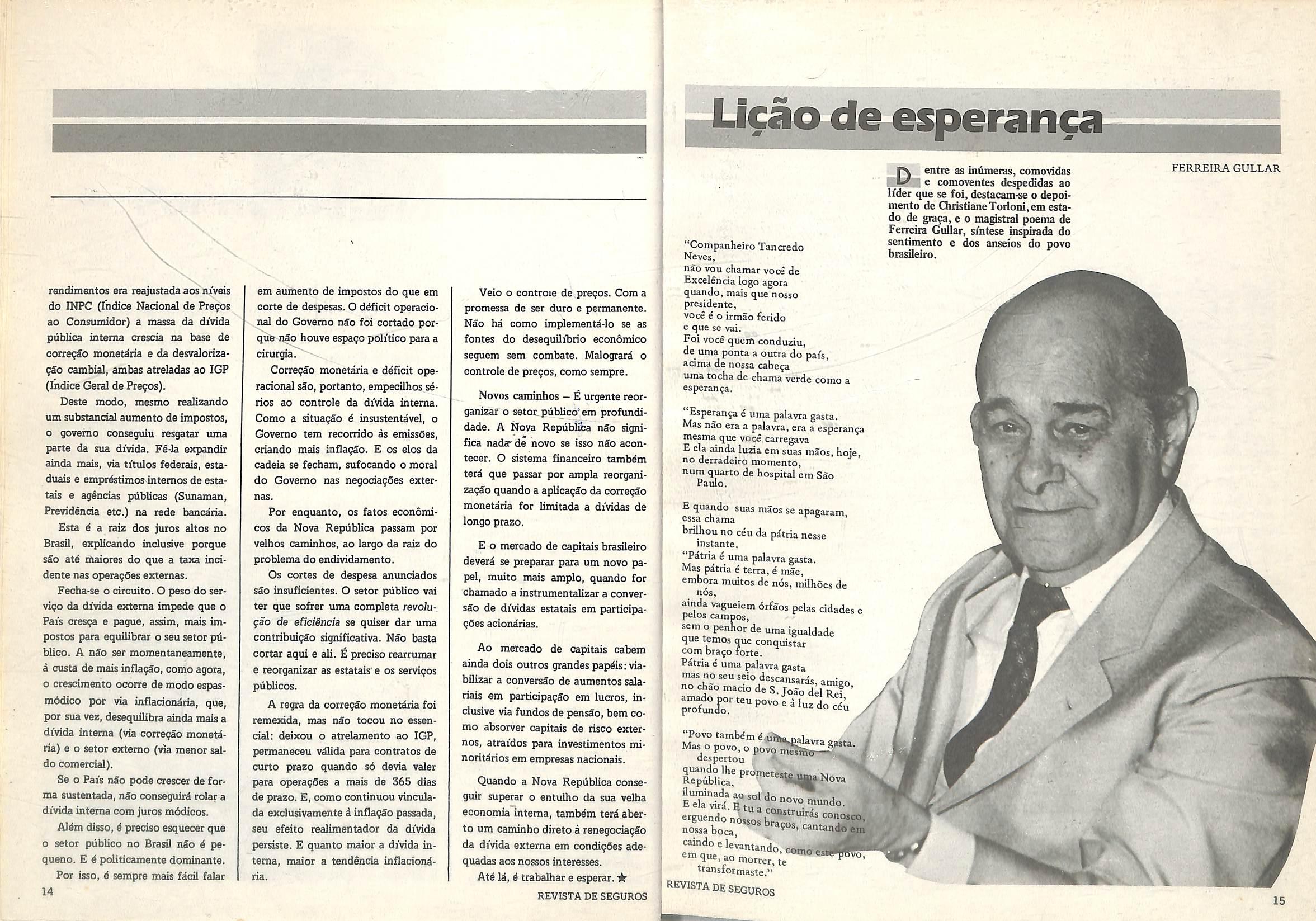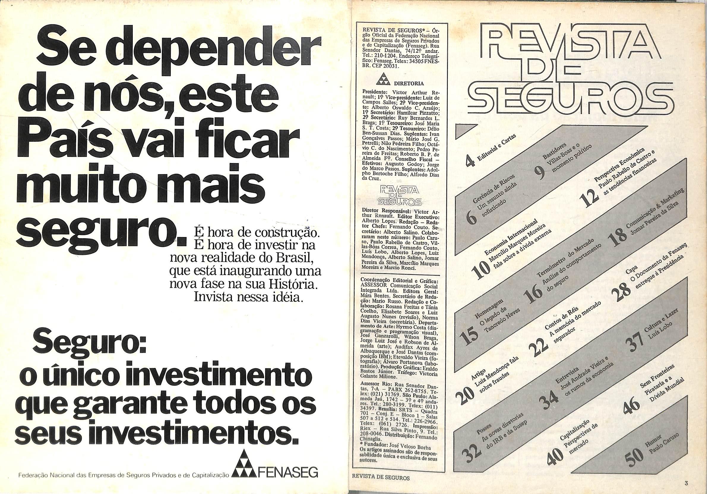 Parabens pela Revista de Seguros. A julgar pelo primeiro exemplar, voces acertaram em cheio ao tomd-la o meio de comunicagdo para a dasse seguradora.