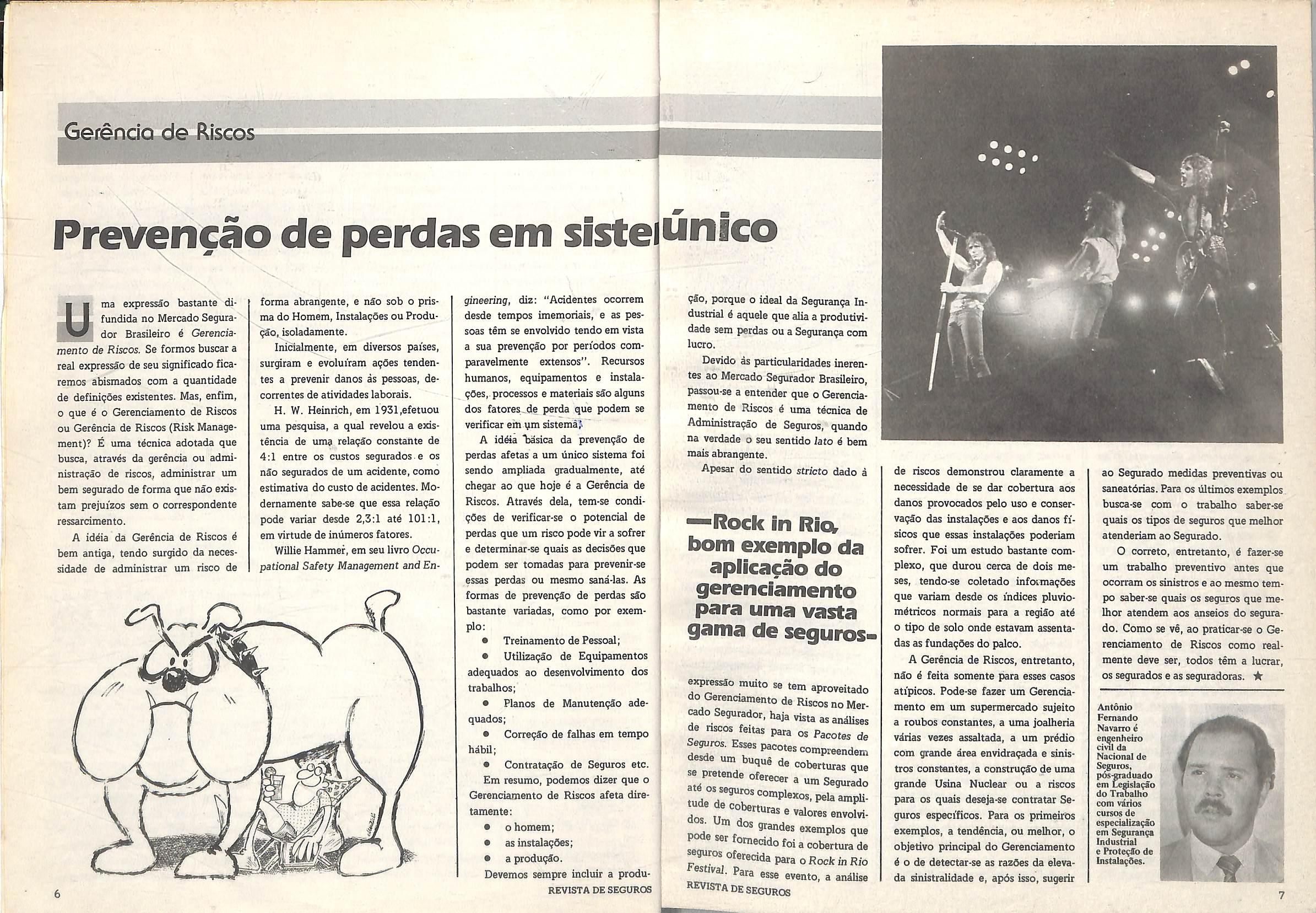 alto ni'vel. Tenho certeza que se. Josd Veloso Borba e Ivo Rosas Borba estivessem aqui, compartUhariam comi go este sentimento, pois, co mo eu, tudo rizeram para quo a Revista de Seguros atingisse o mais elevado grau de fidelidade aos anseios da classe seguradora.