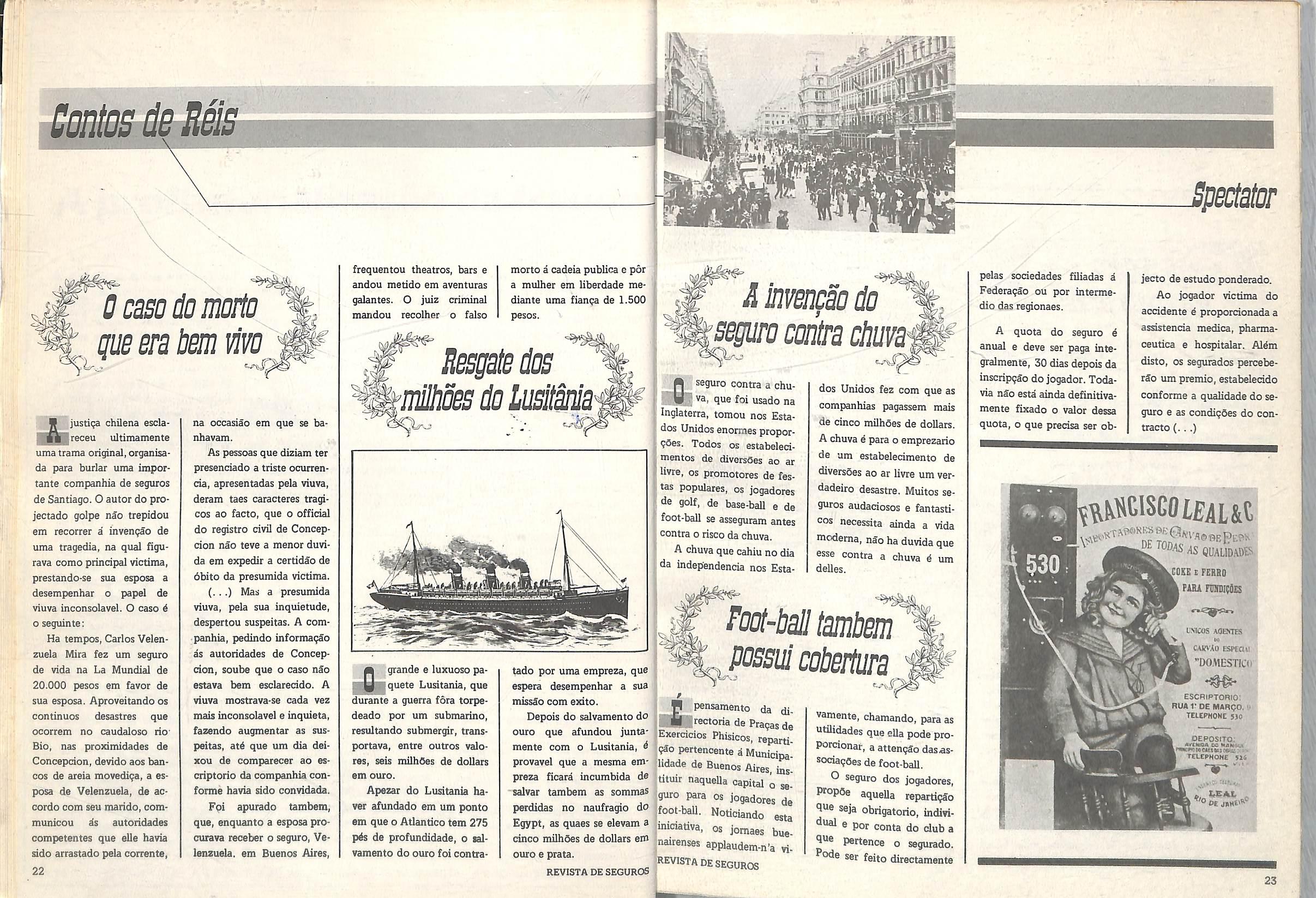 Foi com grande alegria que recebi os exemplares da Revista de Seguros. Confesso que me encontrava superocupado, mas nlo resisti a tentagdo de folhear a Revista, tentagSo esta que me ocupou a taide inteira,