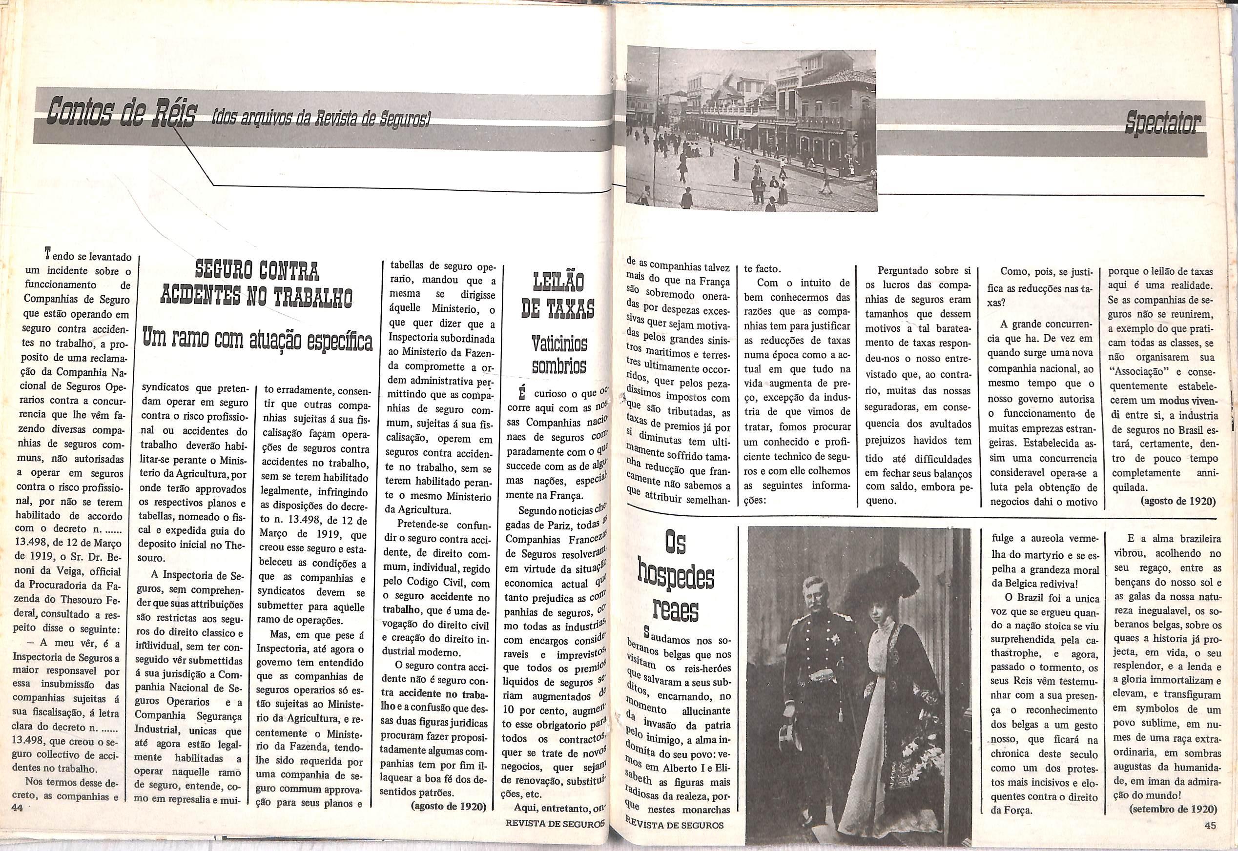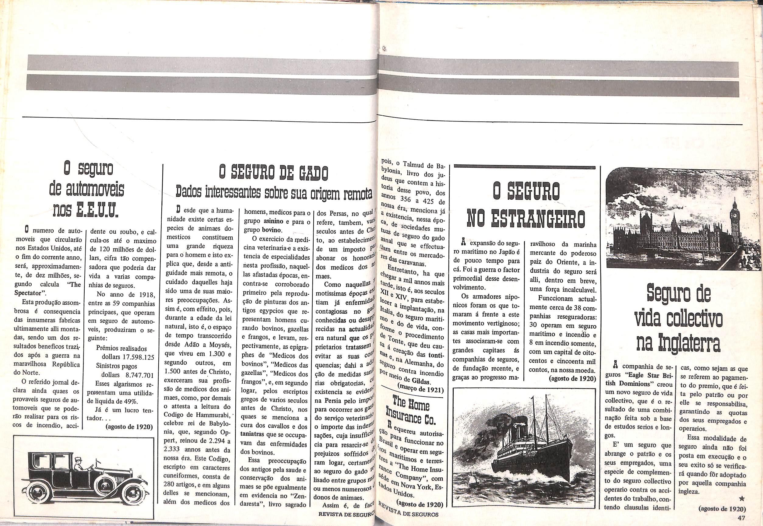 Fimccionam actualmente cerca de 38 com panhias reseguradoras: 30 operam em seguro maritimo e incendio e 8 em incendio somente, com um capital de oitocentos e cincoenta mil contos,na nossa moeda.
