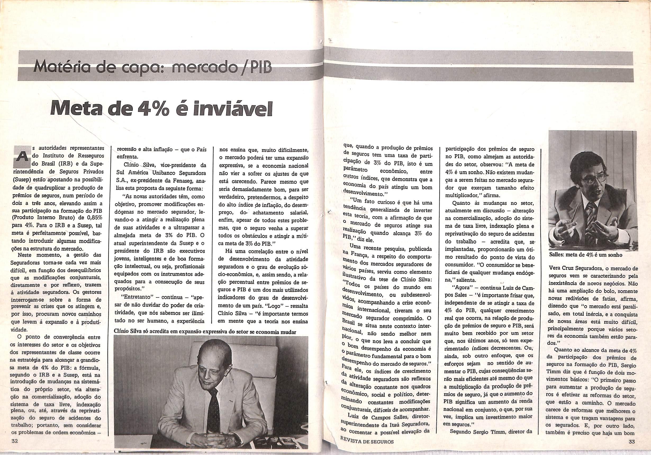 As autoridades do IRB e da Susep apostam 32 na possibilidade de| quadruplicar a produ93o de piemios de seguros,elevando a participa93o no PIB de 0,85% para 4%.Os empresdrios debatem a questSo