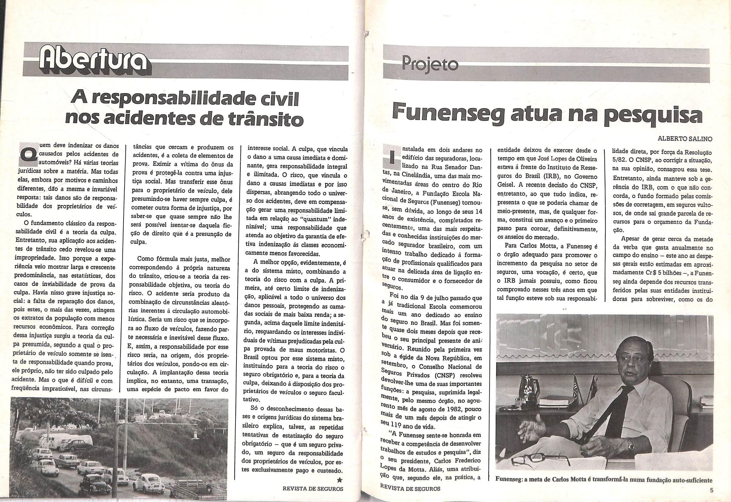 Para Carlos Motta, a Funenseg 4 0 dtgSo adequado para promover o incremento da pesquisa no setor de seguros, uma vocagSo, 4 certo, que o IRB jamais possuiu, como ficou comprovado nesses tres anos em que tal fungao esteve sob sua responsabi-
