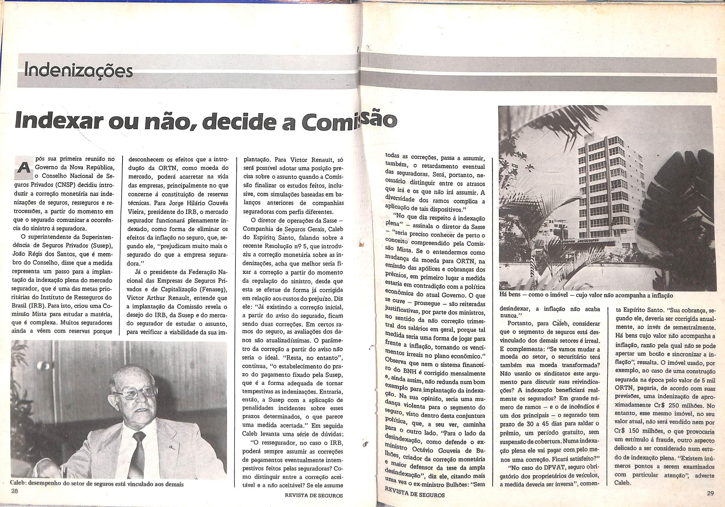 entidade deixou de exercer desde o tempo em que Jos4 Lopes de Oliveira estava a frente do Instituto de Resseguros do Brasil (IRB), no Govemo Geisel. A recente dedsSo do CNSP, eiitretanto, ao que tudo indica, re presents 0 que se poderia chamar de mdo-presente, mas, de qualquer for ma, constitui um avango e o primeiro passo para coroar, definitivamente, OS anseios do mercado.