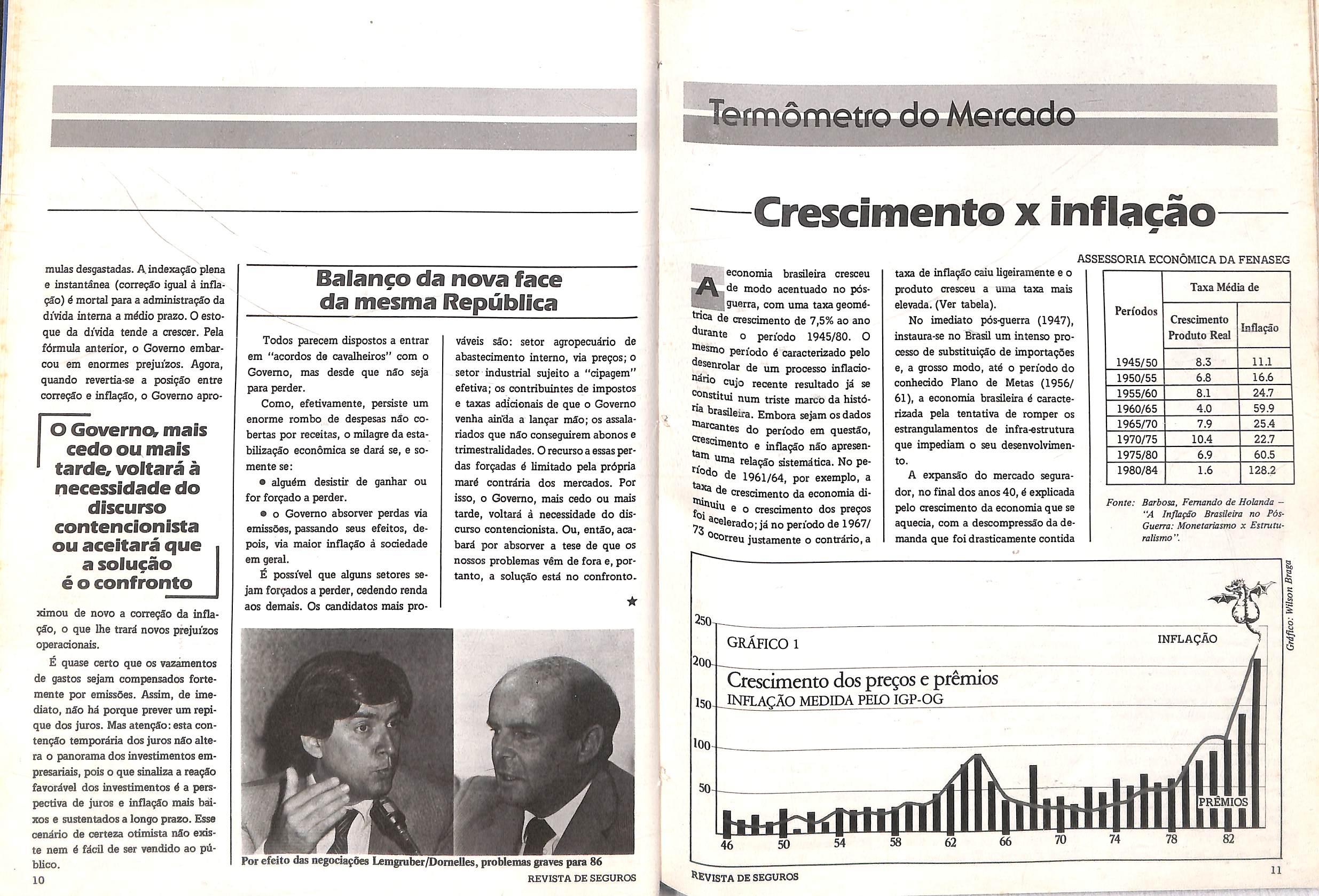 Novos cendrios se avizinham. Quais serSo eles? De pratico e imedlato, acentuou-se dentro e fora do Govemo a linha "crescentista". Quern temia um desaquecimento economico, pelas maos do Ministro Domelles, vai ter que esperar at4 a virada do ano, pelo menos. Embora as estatisticas industriais deste segimdo semestre tendam a mostrar desaceleragSo, estarlo refletindo apenas menos crescdmento relative aos ultimos meses de 1984, que foram de grande expansSo.