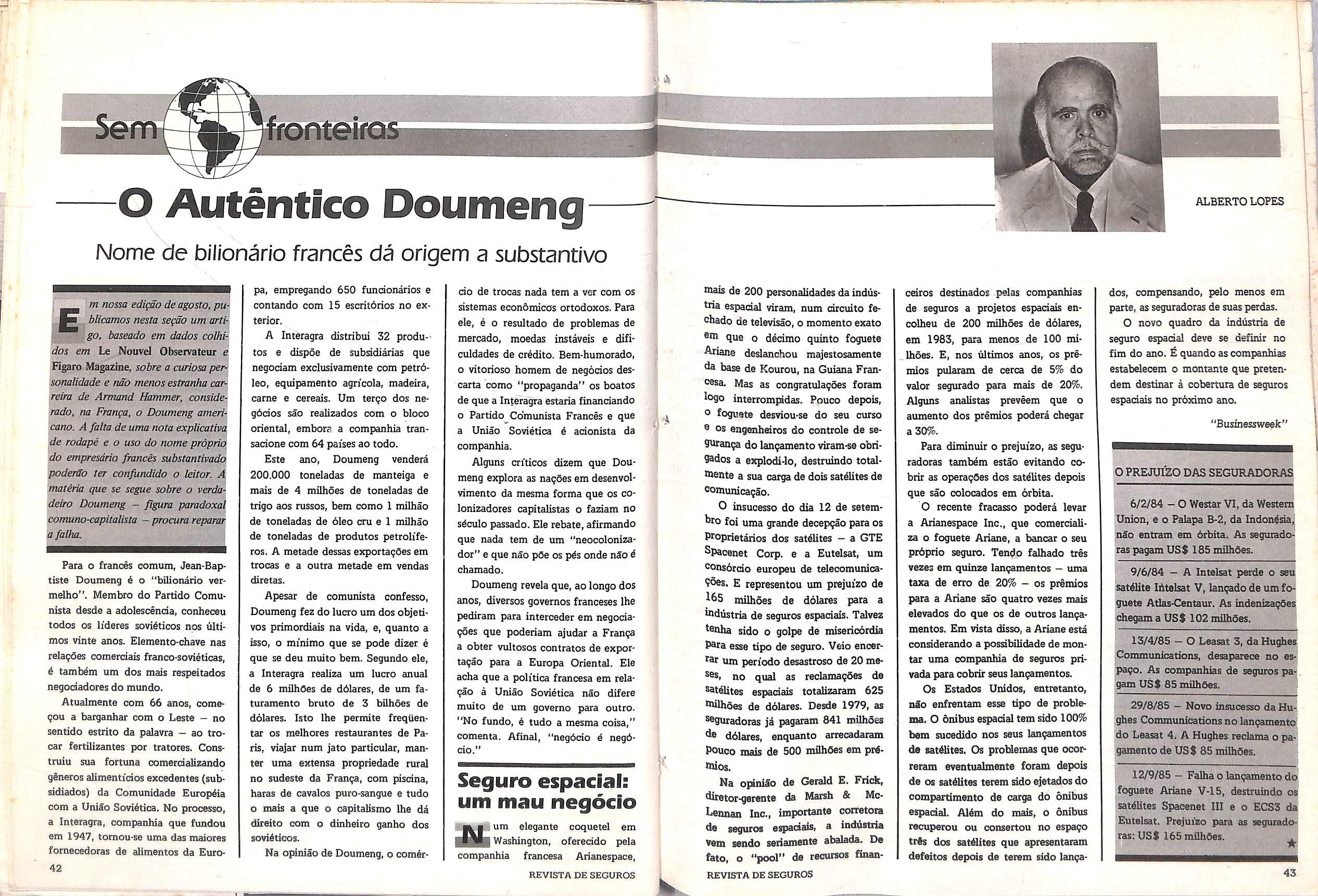 ■■;^^'5.^Coface - Companhia France^~^^sa de Seguros para o ComdrIdo no Exterior - obteve,em 1984, um lucro de 1,1 bilhdo de fran cos no ramo de seguro de crddito a exportagSo, embora os dois exercidos anteriores tenham sido defidtdrios. Explicagdo do presidente da companhia, Henri Baquiastiaumento