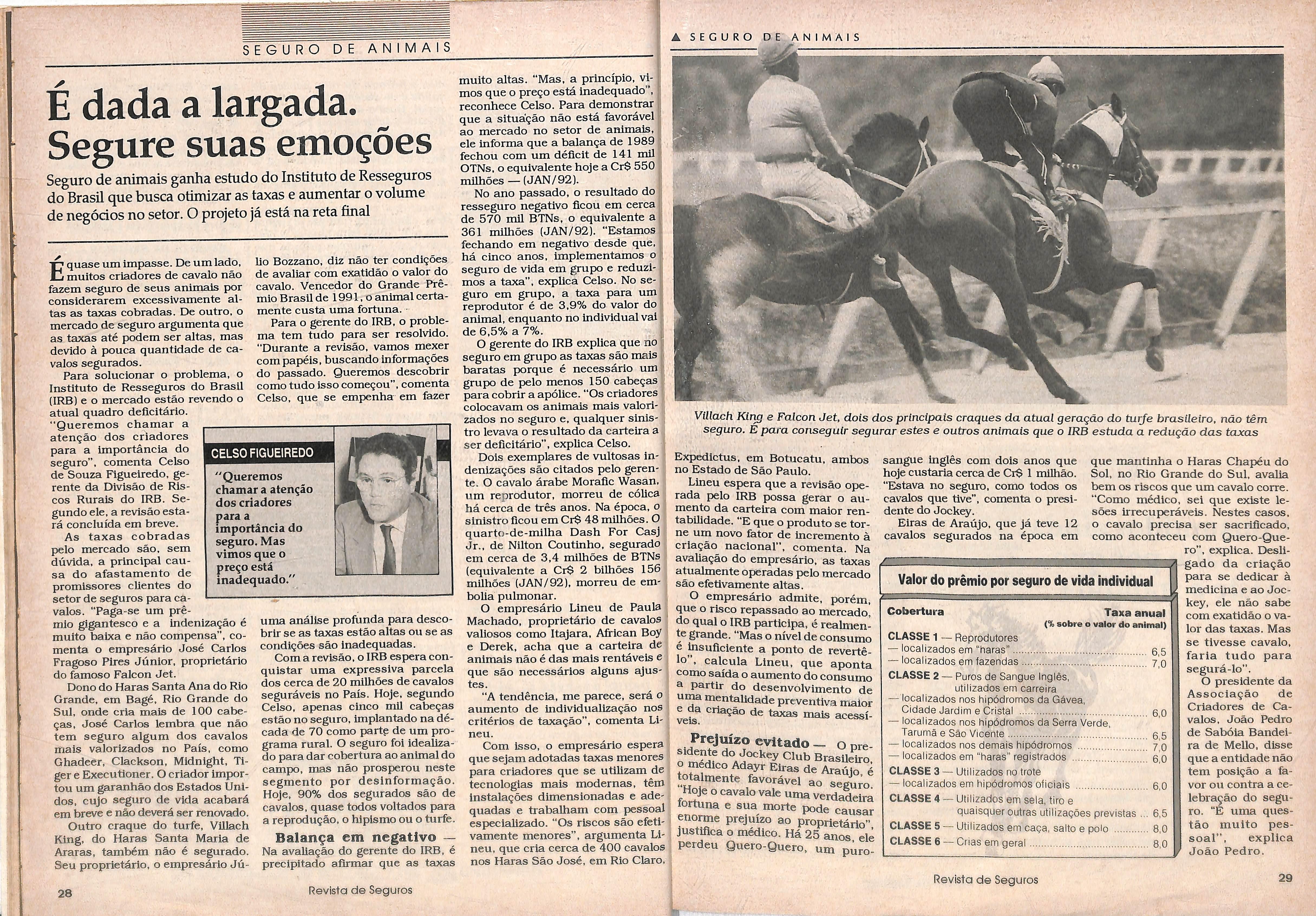 Um impasse entre criadores de cavalos e o mercado de seguros estd sendo examinado pelo IRB. A taxa9ao para o seguro doscavalosde raga, segundo os criadores, 6 aha. O mercado alega que as taxas podem ser reduzidas se um maior numero de criadores fizerem seguro 28