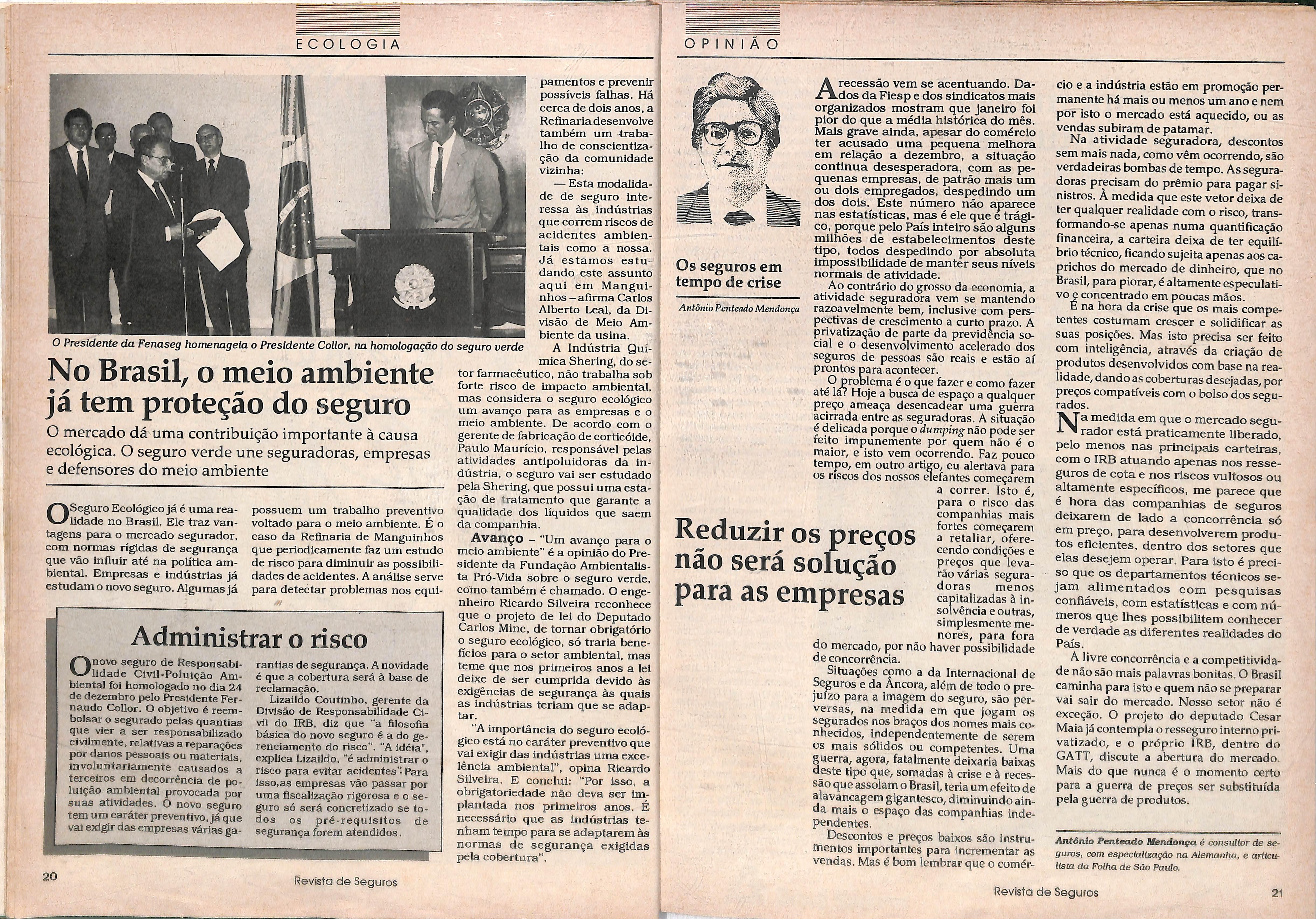O mercado segurador antecipou-se, consciente tanto da importancia da causa ecologica, quanto do seu dever de contribuir para o exito dessa causa no pais.