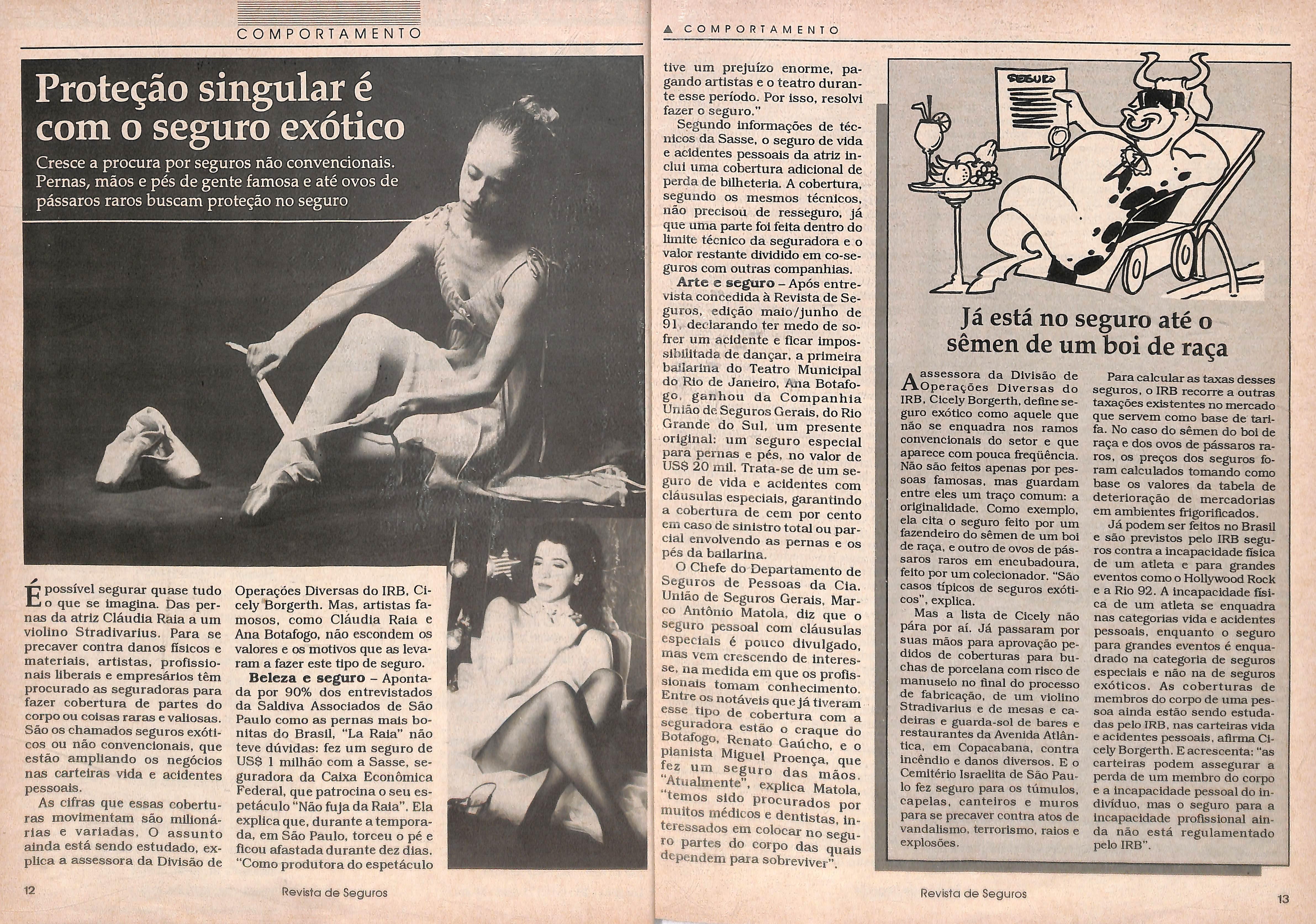 concluida no esforgo do setor em acompanhar o rumo dos acontecimentos. As empresas comegam a se preparar para viabillzar a contratagdo do Seguro Ecologico, homologado em dezembro de 91 pelo presidente Collor. Mas a versattlidade do setor ndo tem Itmites e o consumidor brasileiroJd podejazer seguro para tudo, ou quase tudo. Pernas, pes, ovos de aves raras, semem de boi de raga e um autentico vtolino Stradivariusjazem parte da colegdo dos seguros exoticos do IRB. O economista Paulo Rabello de Castro e o presidente da Finasa Seguradora, Dario Ferreira Guarita Filho, preveem um ano muito dijicil para as seguradoras. Quem estiverpreocupado com a previsdo dos nossos entrevistados pode dar uma olhadinha na receita do presidente da Comissdo de Marketing da Fenaseg, Felice Maria Foglietti, para vender mais seguros em 92, na Segda Rdpidas.