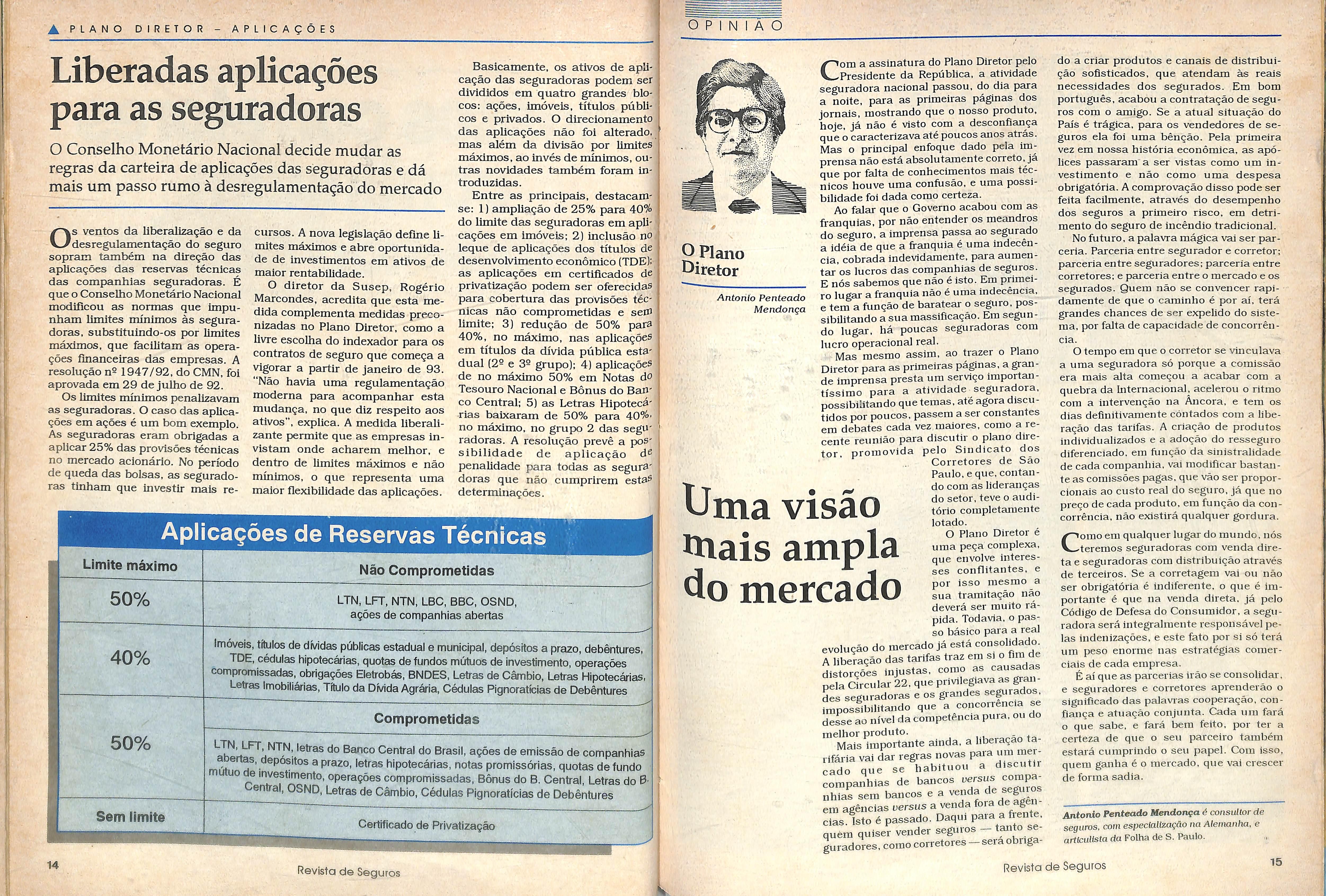 Em sua essencia, o Piano aponta para a liberagao operacional e tarifaria que vai estimular a competigao do mercado. Propoe novas regras para controle de capital das empresas seguradoras. ampliando-se os espagos para a iniciativa privada. Restringiu-