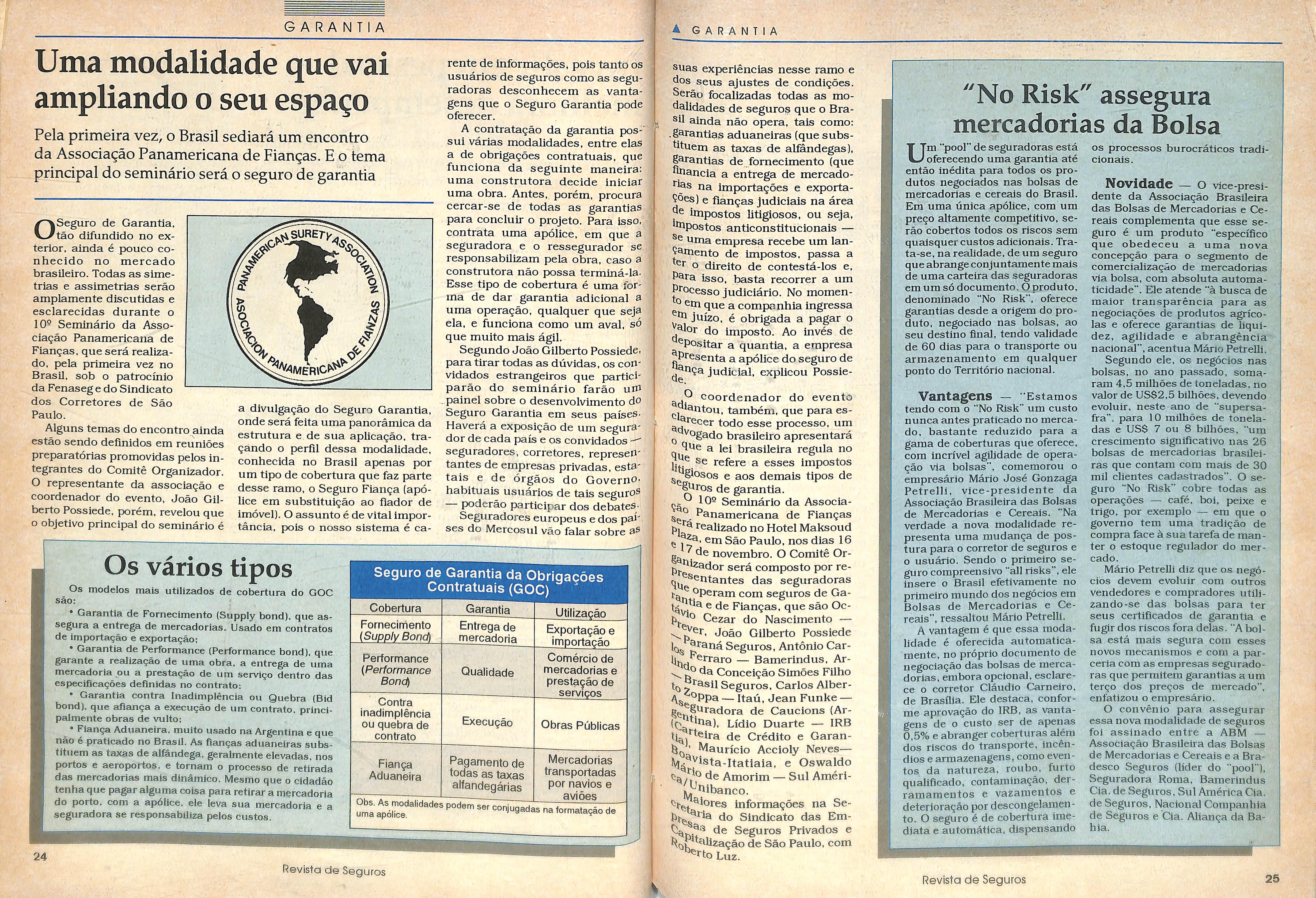 edlgoes da Revista de Seguros, nada mats adequado do que Introduzlr novldades, reorlentar o conteudo editorial e langar um caderrvo especial, que vai prestigiar os mercados de seguro reglonais. A nova diregdo da Fenaseg entende que os sustentdculos de sua fepresentagdo estdo nos sindicatos, onde as liderangas locals tern a dirnensdo exata dos anseios e necessidades de seus comandados. A partir desta edigdo, todas as regioes brasileiras serdoJocalizadas, nostrando o potencial e a gfervescencia do mercado ^^gurador nos estados brasileiros. O Piano Diretor e esmiugado por Urn de seus autores, Roberto Ogosauara, coordenador-geral ^tn exerclclo da Coordenadoria ue Politlca Monetdrla e Financeira do Minlsterio da Fconomia. Ele mostra que o Piano tern ingredientes para ugradar a todos; Goverrw, ^ercado e segurados. c- tres eventos internacionais, ''^allzados no Brasll, agitam o ^^lor e sdo destaque nesta ®o'Sdo; Curitiba vai sediar o IV ^ucontro de Seguradores e r?^^9uradores do Mercosul 'Paglna 34); Sdo Paulo se ^^parapara o 10° Semindrio da fsociagdo Panamericana de P'angas (pdgina 24) e o Rio de urieiro sera palco do II Simpdsio » oerici jJLLltJU uu ii ^^rnacional de Automagdo de "guros (pdgina 38).