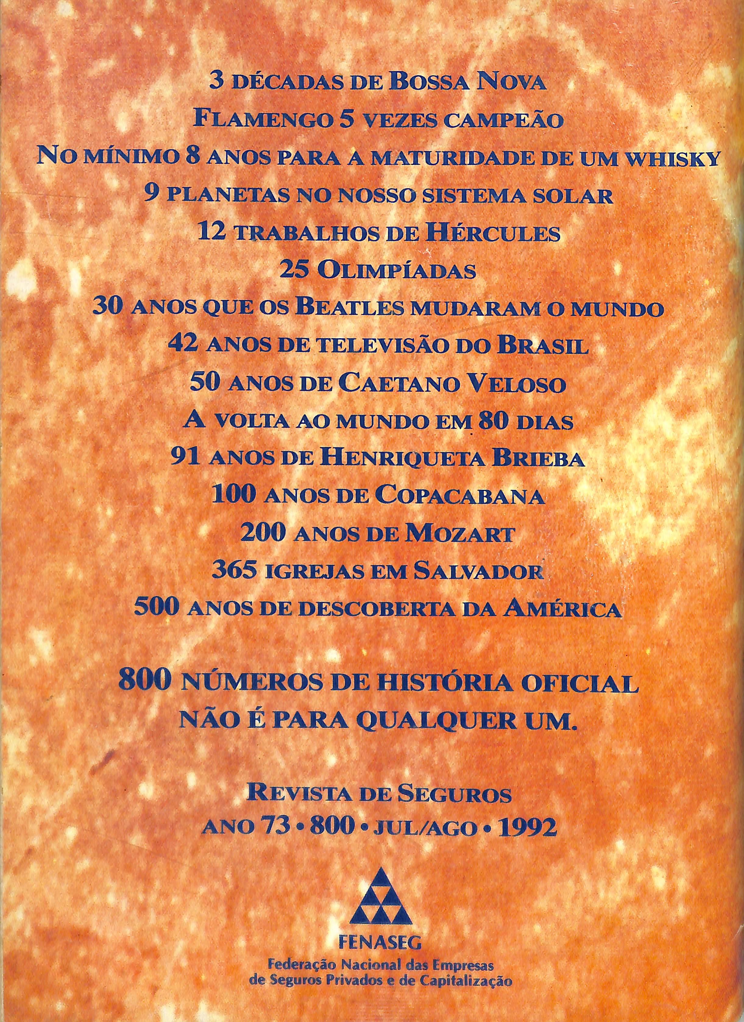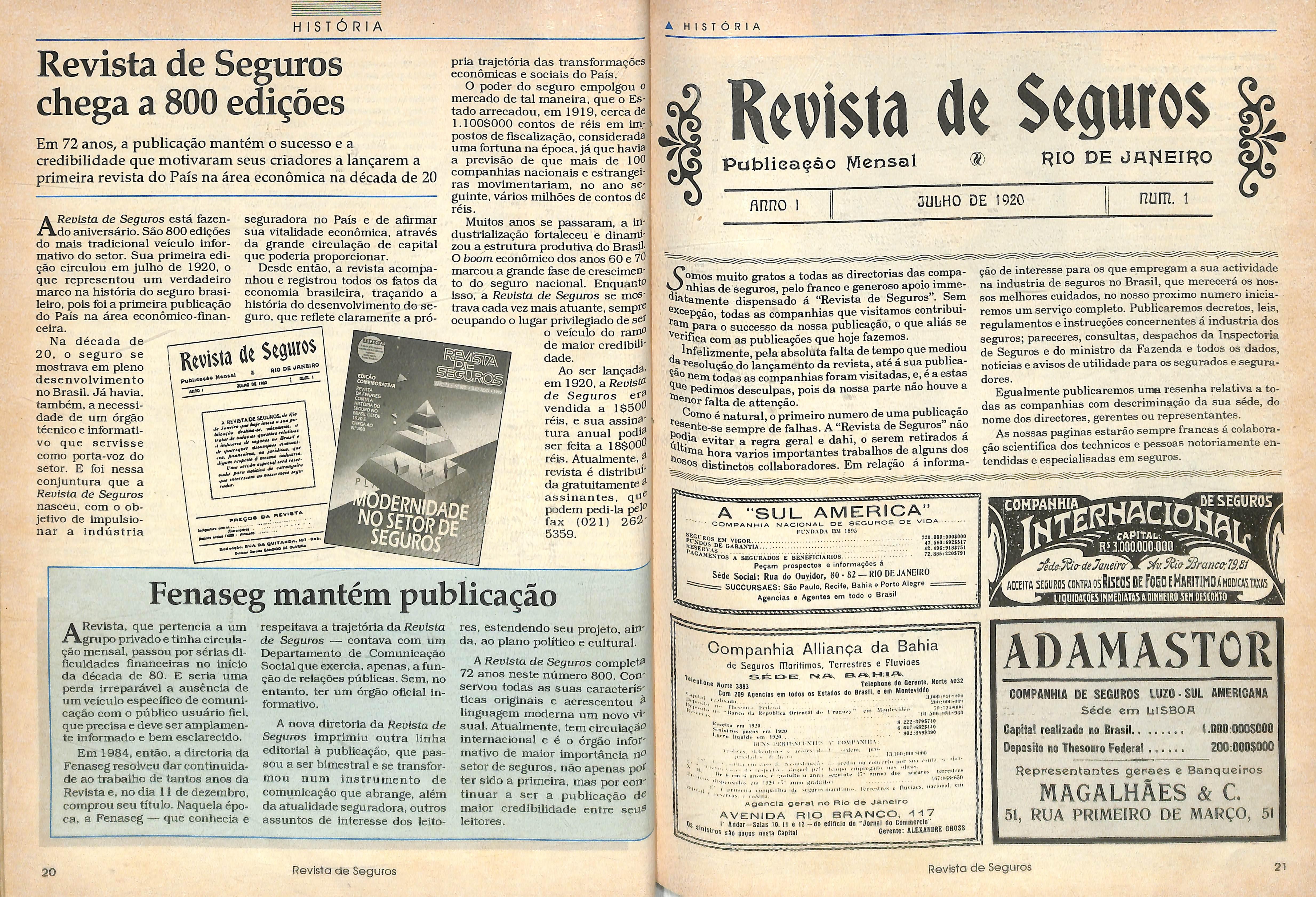 da Revista de Seguros e um marco na historia da comunicagao do setor de segu ros. Seja pelo volume de edigoes, pela qualldade e pela idade da publicagao: 72 anos e a mals antiga publicagao de economla especializada,escrlta em lingua portuguesa. Acrescente-se o momenta em que esta data e festejada.
