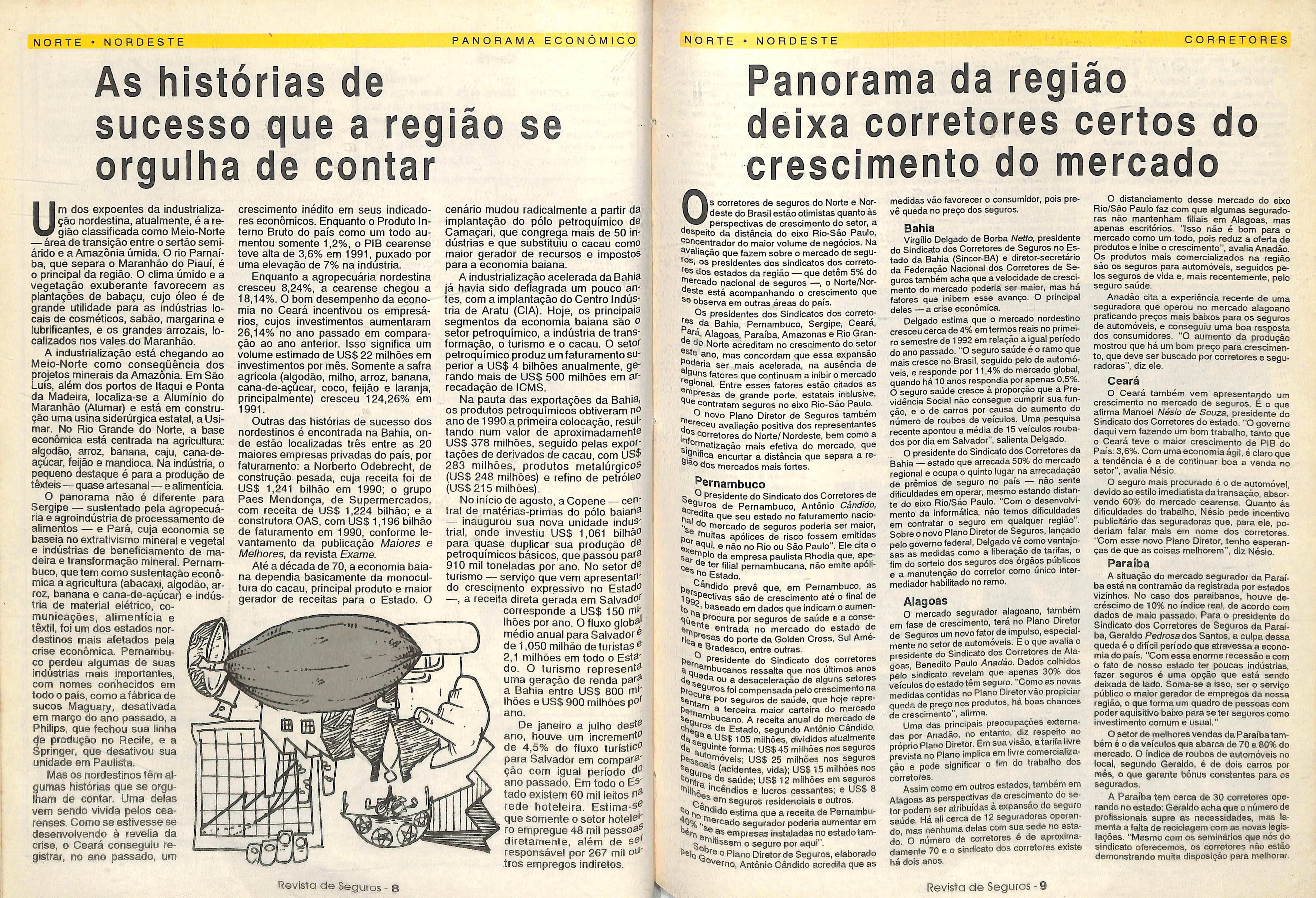 Pela primeira vez, uma revista do setor vai buscar nas regides brasileiras um retrato das suas atividades, seus problemas e dificuldades e os desafios que cada regiao tem que enfrentar para tocar com exito as operagdes de seguro nas suas regides.