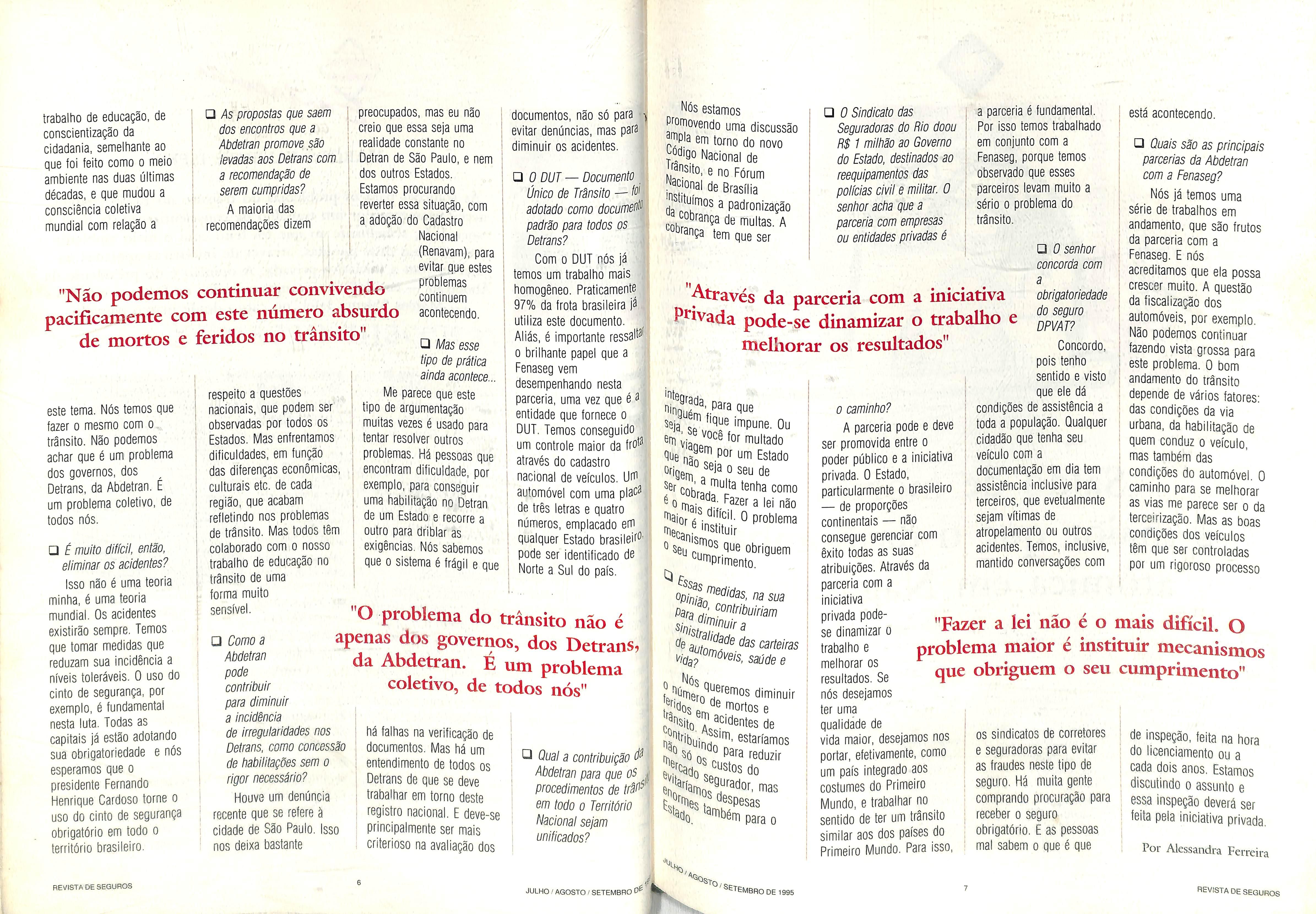aceitaveis, o numero de vftimas de acidentes de transito. A seguir, os principals trechos de sua entrevista a Revista de Seguros.
