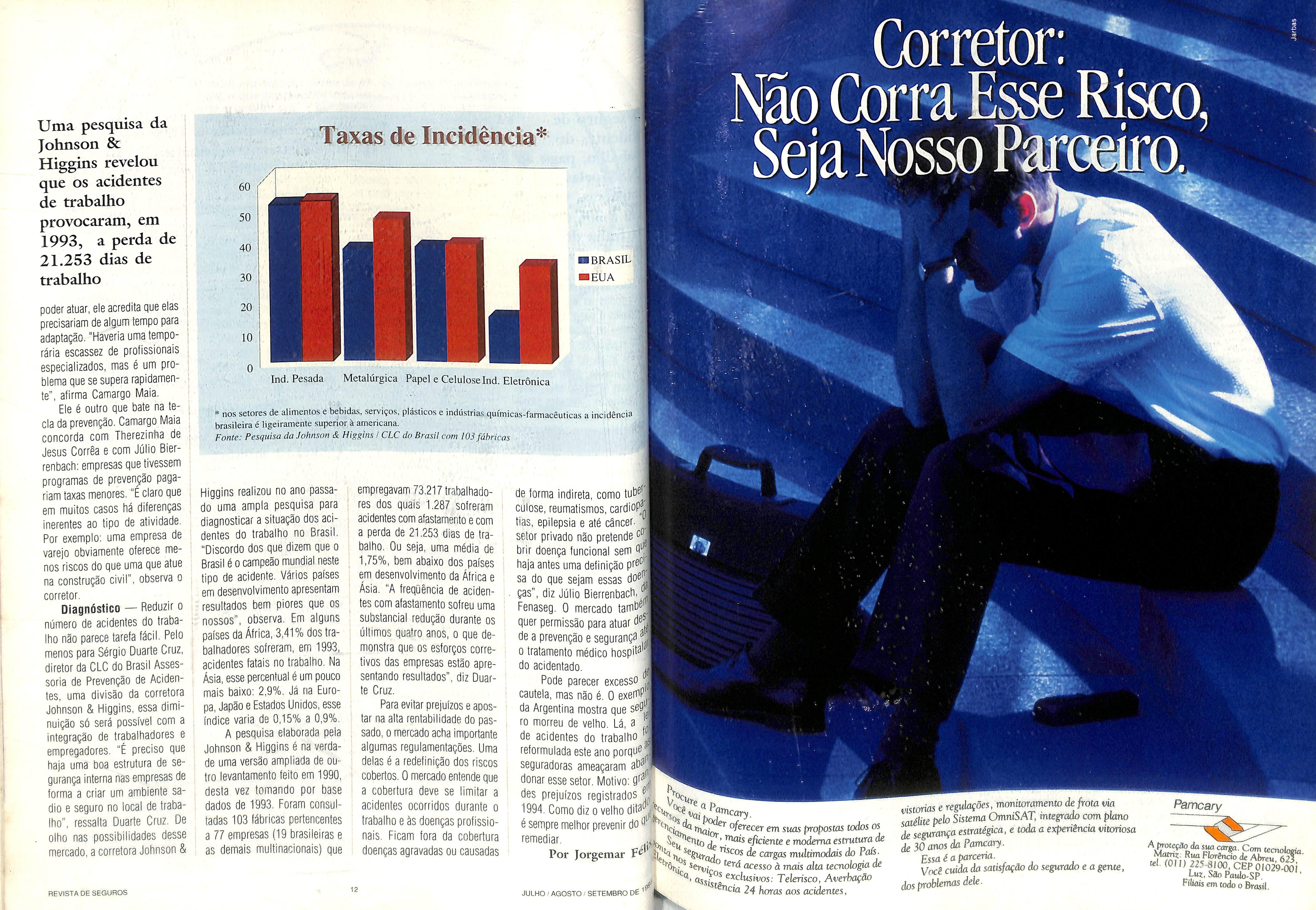 A maleria central desta edipo revela que, no Brasil, cerca de urn milhao de pessoas sao vitimas de acidentes do Irabalho por ano, sendo oinco mil fatais A falta de prevengao pode er inumeras razees, mas, sem dOvida alguma estd fortemenle ligada ao modelo deseguroadolado no Pals (monopL do Estado), que na-o considera os riscos de cada alividade e, portanto, nSo estimula os emptesarios a investirem em seguranga, alem de nao alender bem aos segurados.