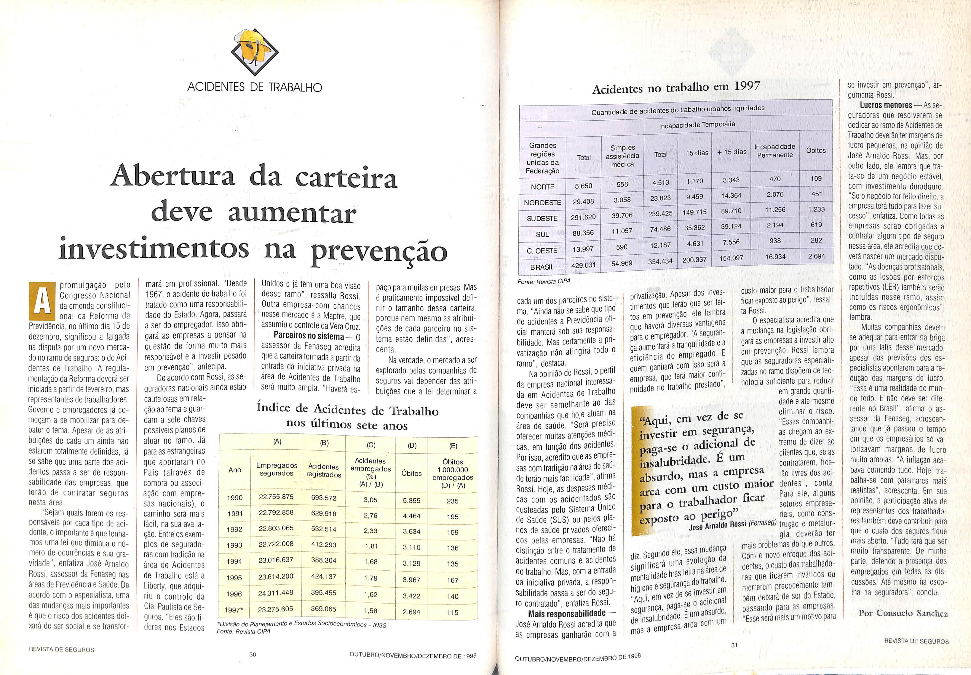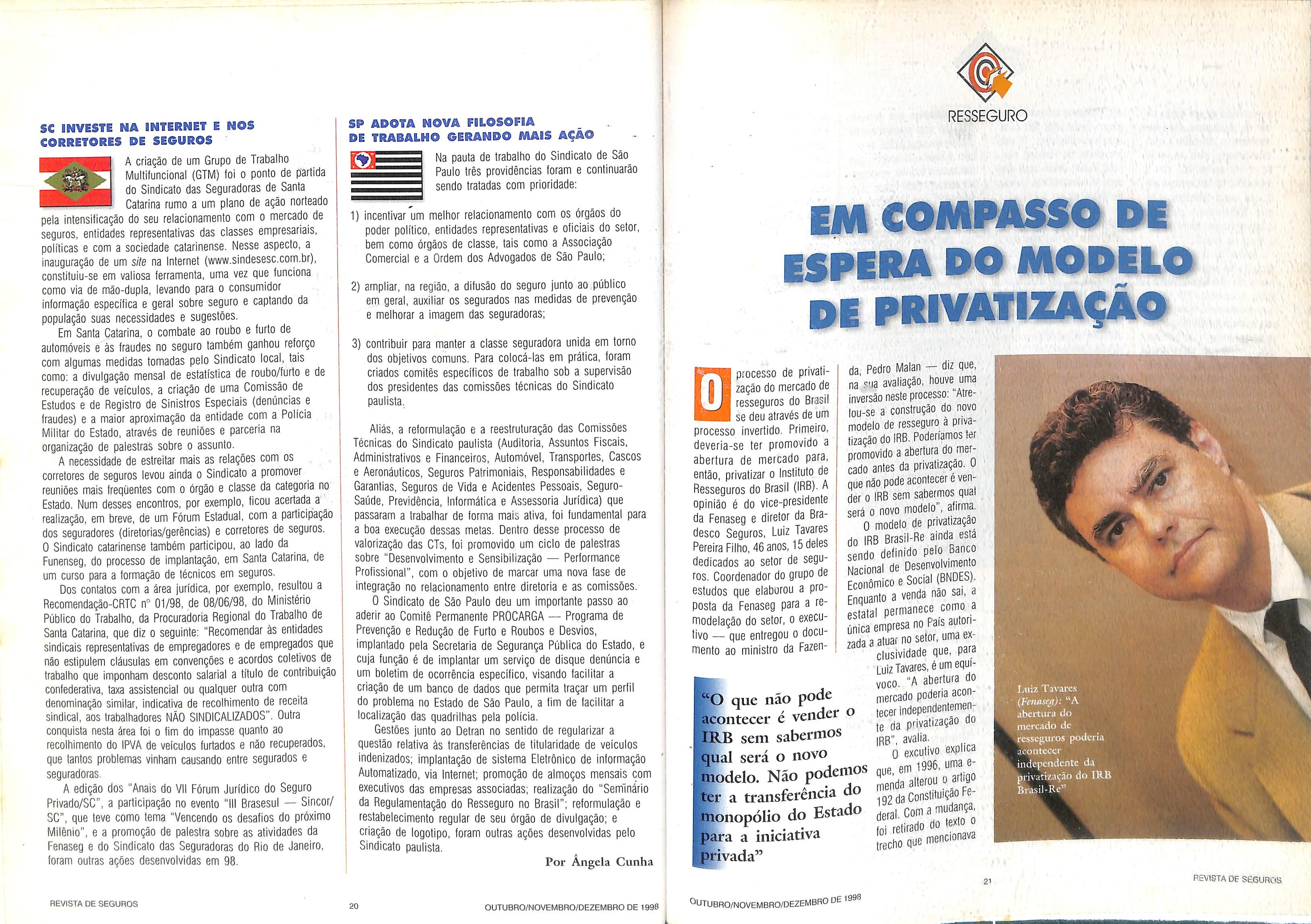 REV.STA DE SEGUROS OUTUBRO/NOVEMBRO/DEZEMBRO DE 1998 OUTUBRO/NOVEMBRO/DEZEMBRO DE 1998
