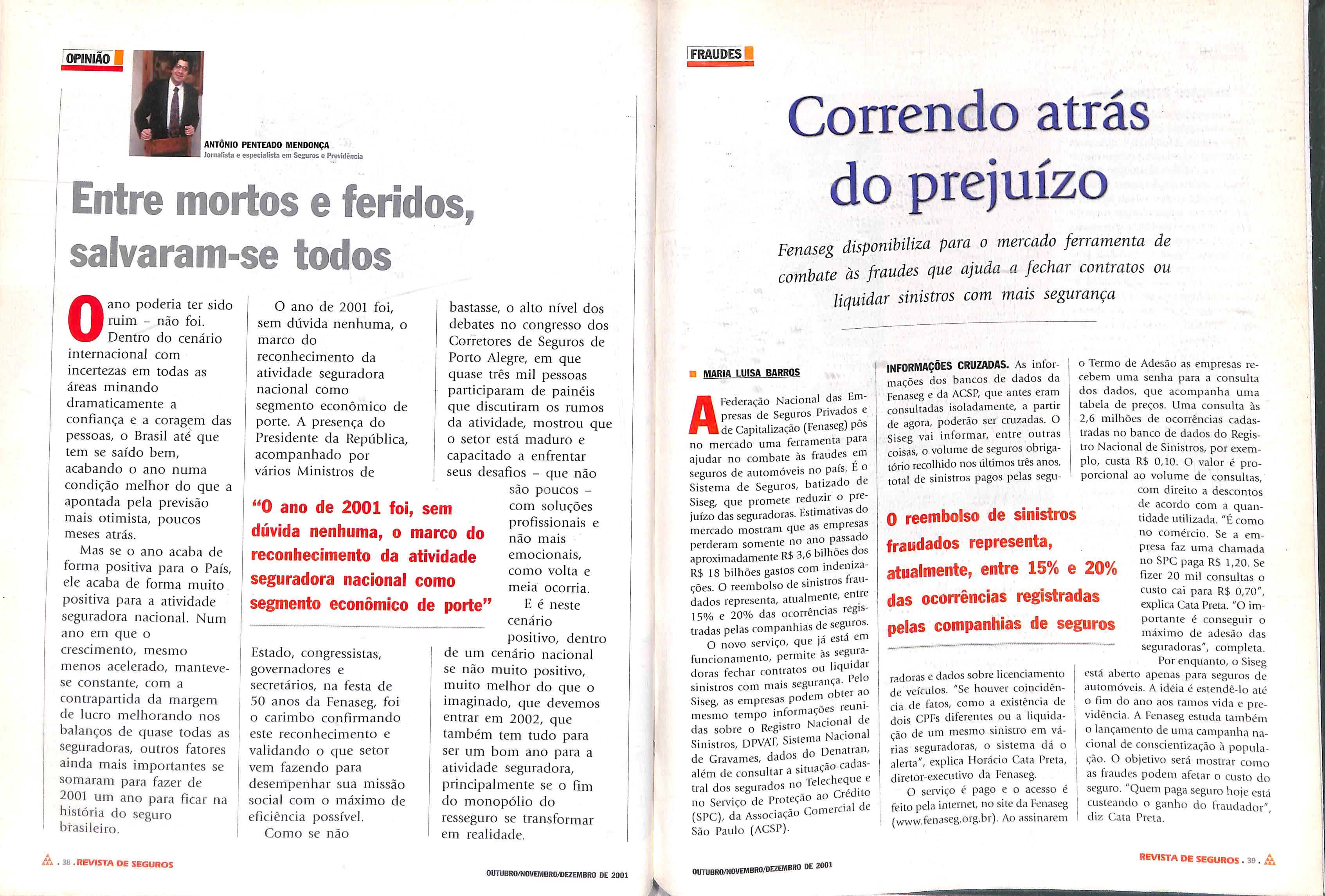 ÓRGÃO OFICIAL DA FENASEG , ANO 83 N° 839 OUT/NOV/DEZ DE 2001