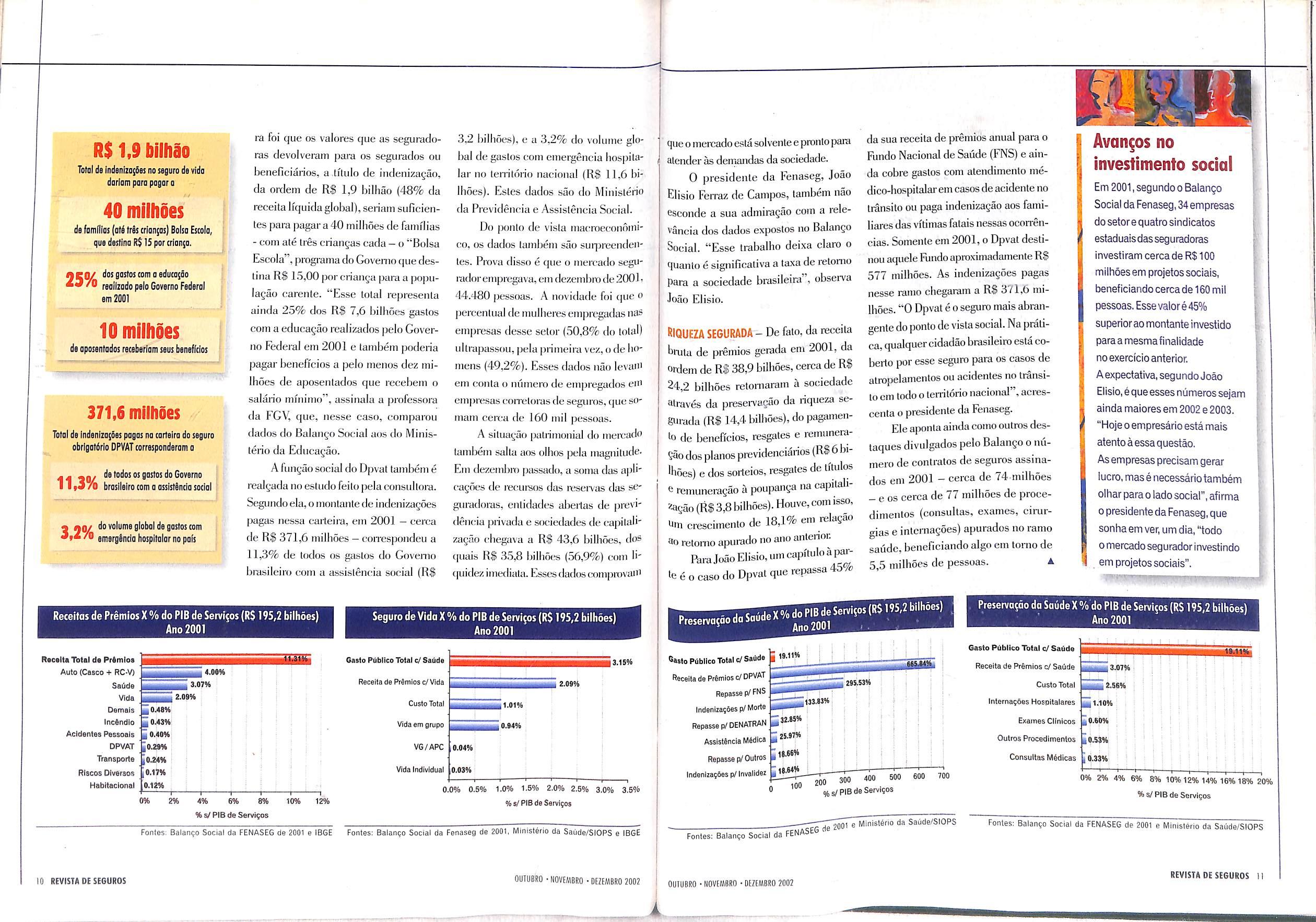 Numeros do Balango Social de2001, publicado pela Fenaseg, comprovam a impoi'taiicia do selor para o desenvolvimento da econoniia brasileira