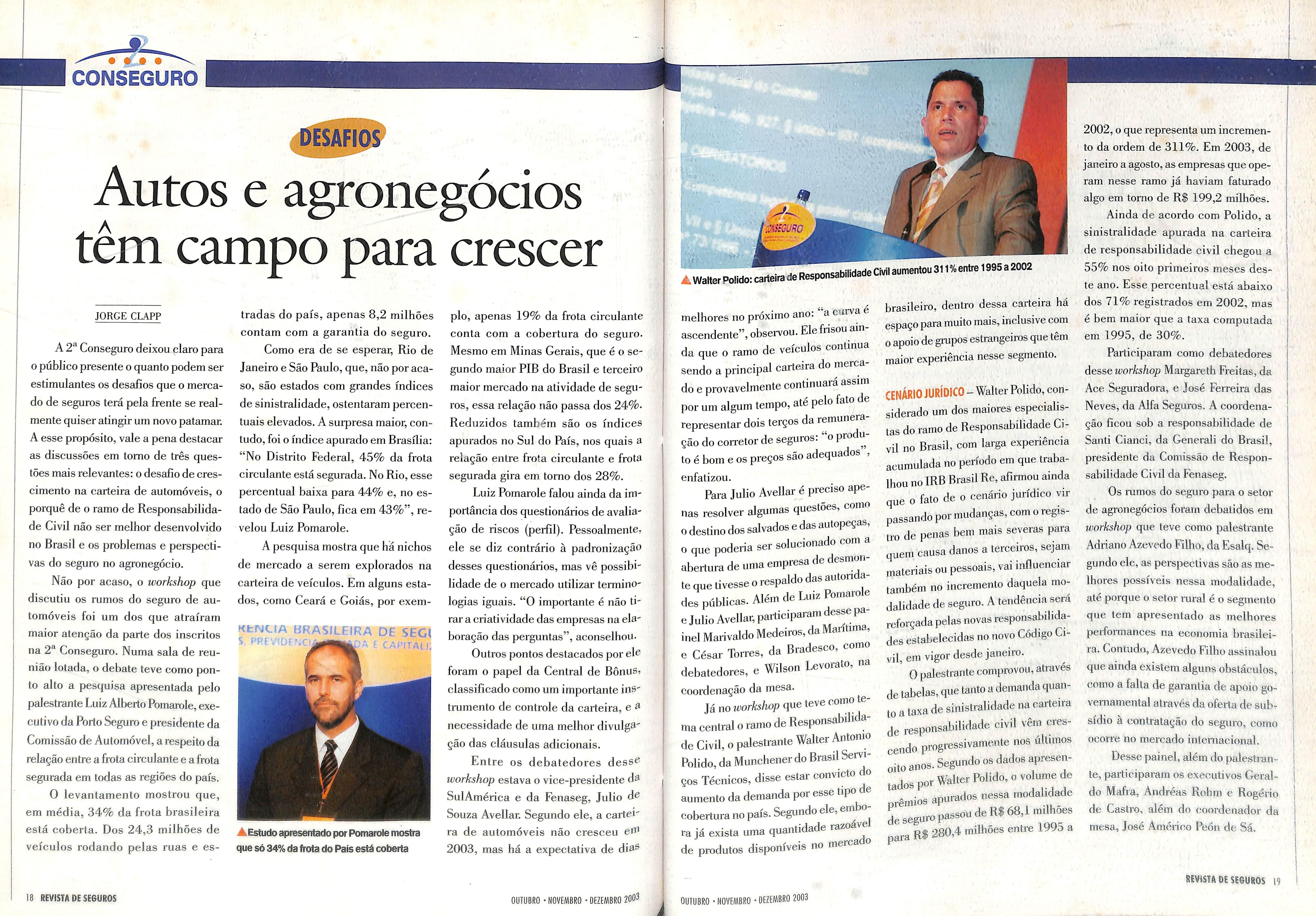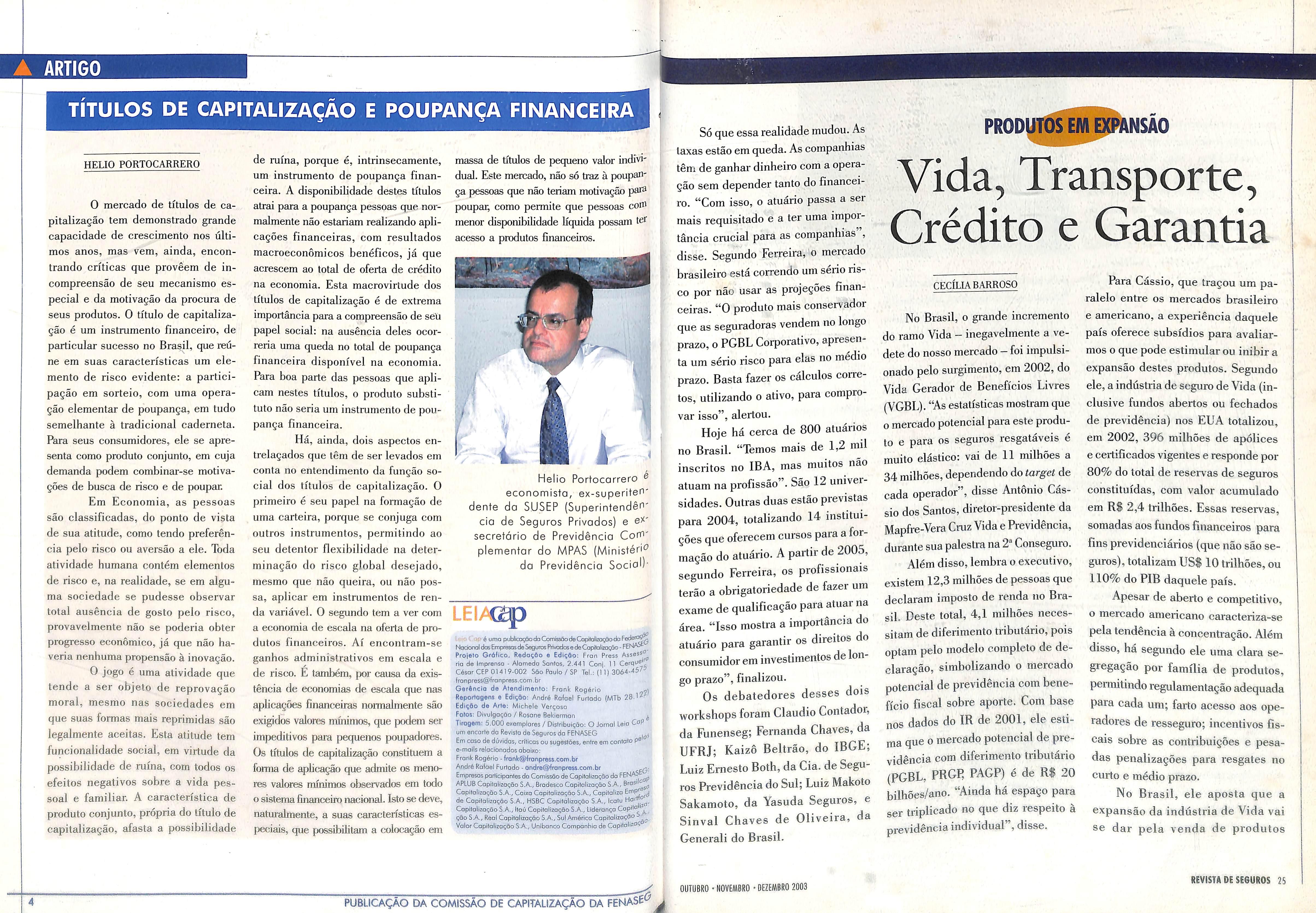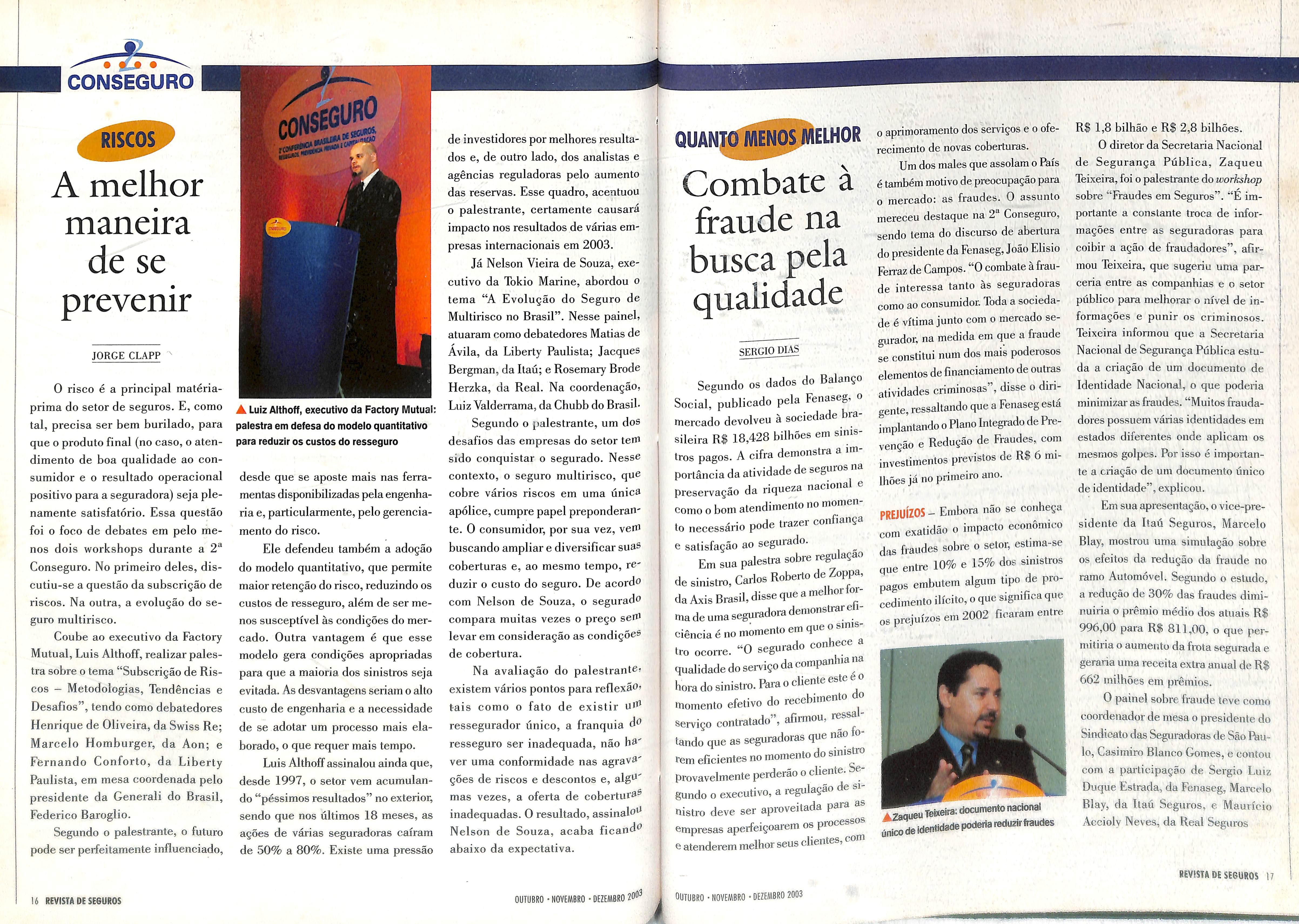46 REVISTA DE SEGUROS OUTUBRO NOVEHABRO • DEZEMBRO 2003