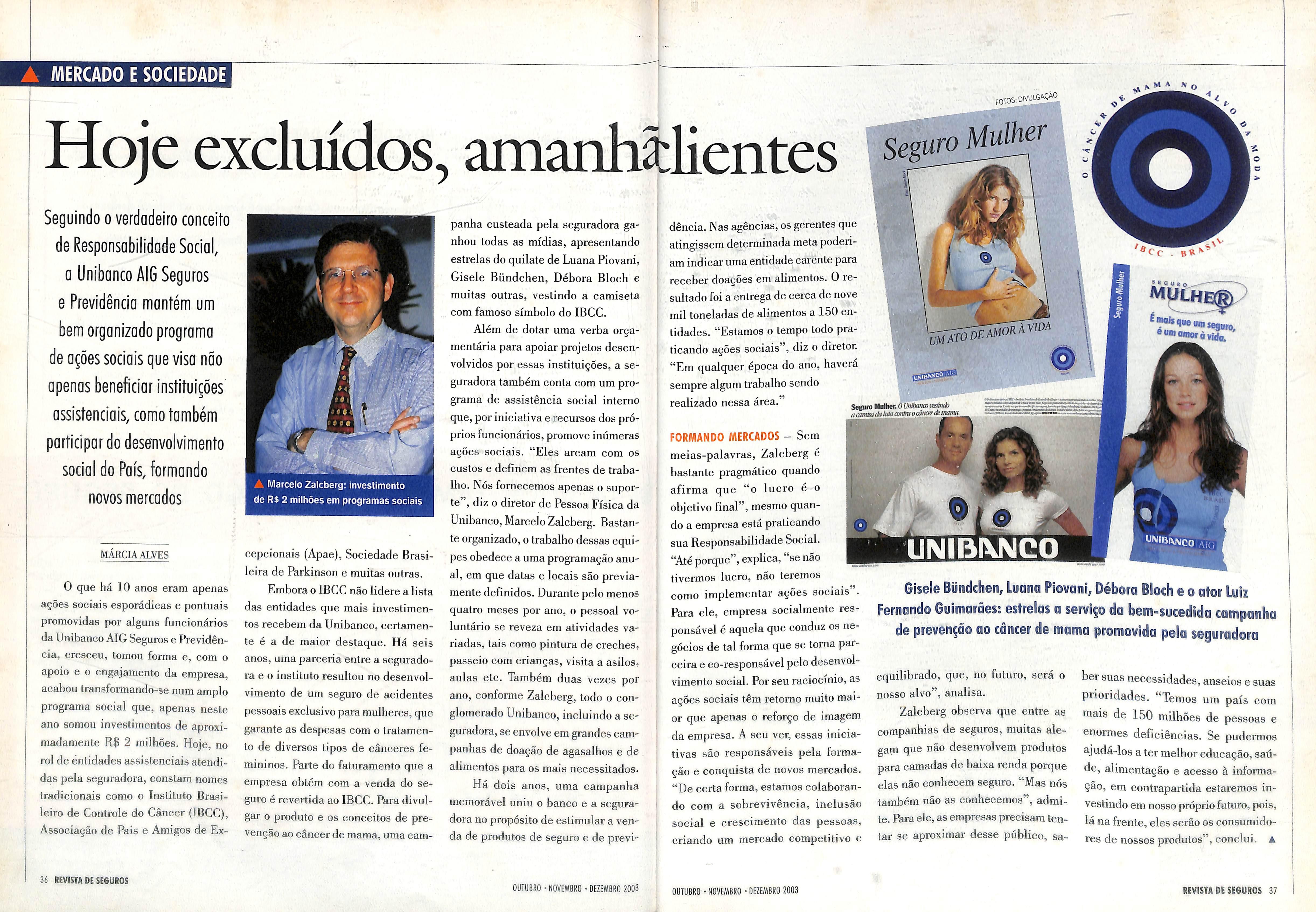 Q L mercado e ^ U SOCIEDADE Unibanco AIG Seguros e Previdencia:investimento agoes socials contribui para o desenvolvimento do Pais, formando novos mercados ""tubro • NOVEMBRO • DEZEMBRO 2003 REVISTA DE SEGUROS 3