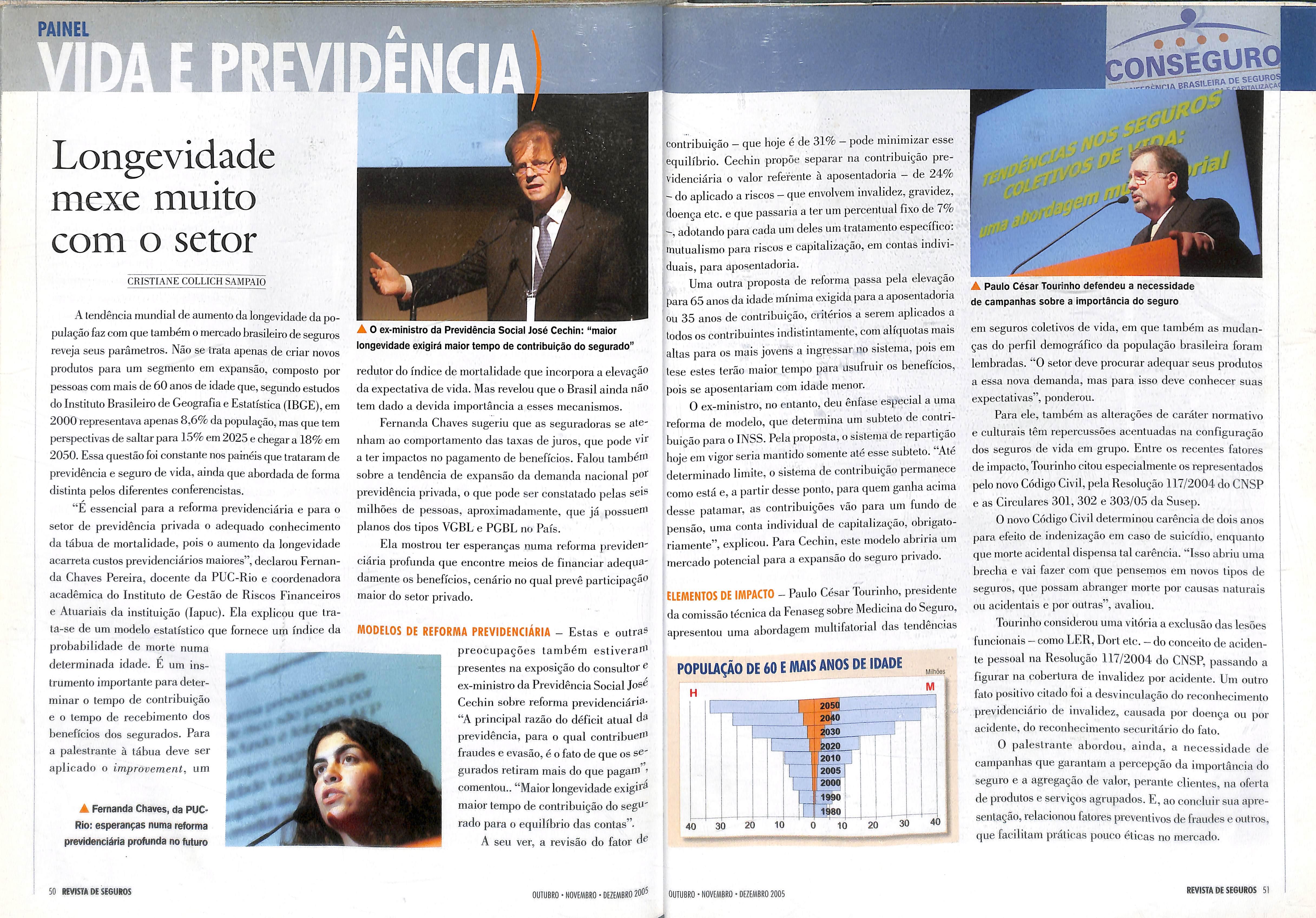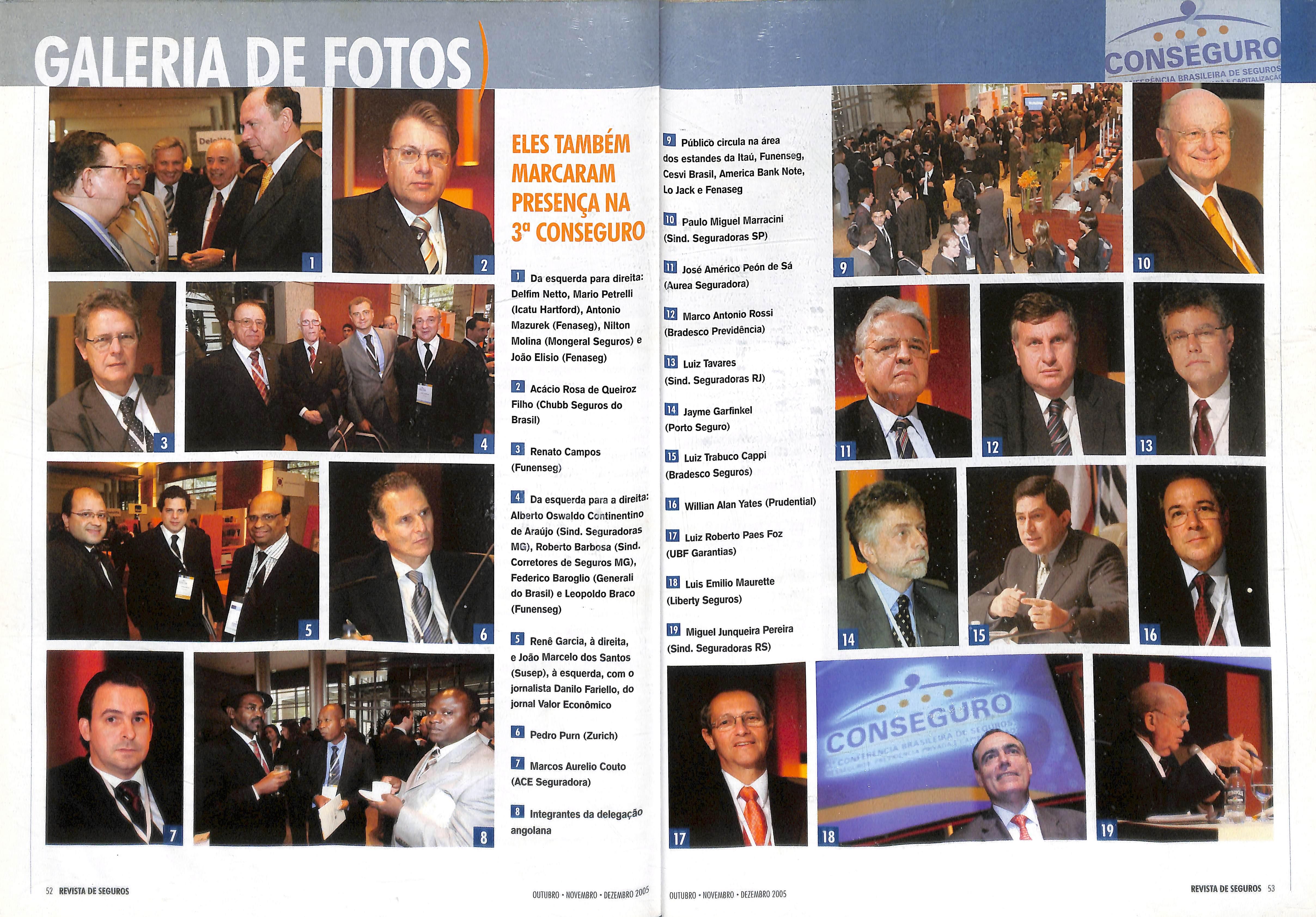 Privada e Capitalizagao(Conseguro), para debater a atualidade e o futuro do setor. No eardapio de 35 palestras em torno do tema comum -"0 mercado brasileiro em ambiente de transformagao" -, foi colocado em mesa desde o susto planetario em face das mudangas climaticas ate as conseqiiencias da sombra negra dos atentados terroristas, projetada como ameaga a seguranga pessoal, patrimonial e institucional,passando ainda por diversos temas tecnicos. Os principals momentos da 3"Conseguro sao mostrados nesta edigao da.Revista de Seguros.