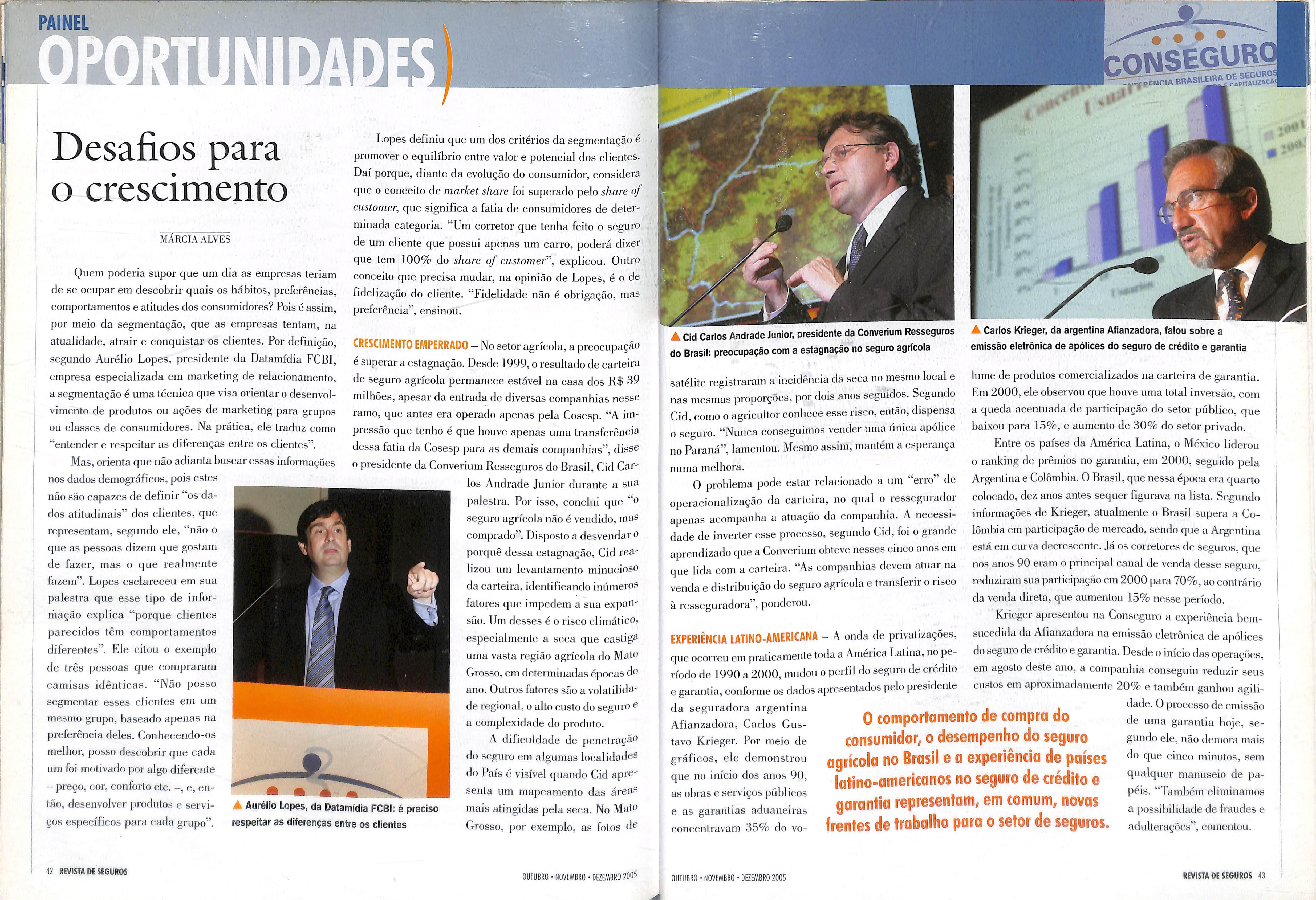 Com certeza a Conseguro, pela variedade e competencia das opinioes expostas,contribuiu e continuara contribuindo para o aprimoramento das bases teoricas sobre as quais o mercado desenvolvera produtos cada vez mais afinados com as efetivas demandas da sociedade brasileira.