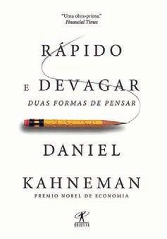 Sinopse: O autor nos leva a uma viagem pela mente humana e explica as duas formas de pensar: uma rápida, intuitiva e emocional; a outra, mais lenta, deliberativa e lógica. Kahneman expõe as capacidades extraordinárias – e também os defeitos e vícios – do pensamento rápido e revela a influência das impressões intuitivas nas nossas decisões. Comportamentos tais como aversão à perda, o excesso de confiança no momento de escolhas estratégicas, a dificuldade de prever o que vai nos fazer felizes no futuro e os desafios de identificar corretamente os riscos no trabalho e em casa só podem ser compreendidos se soubermos como as duas formas de pensar moldam nossos julgamentos.