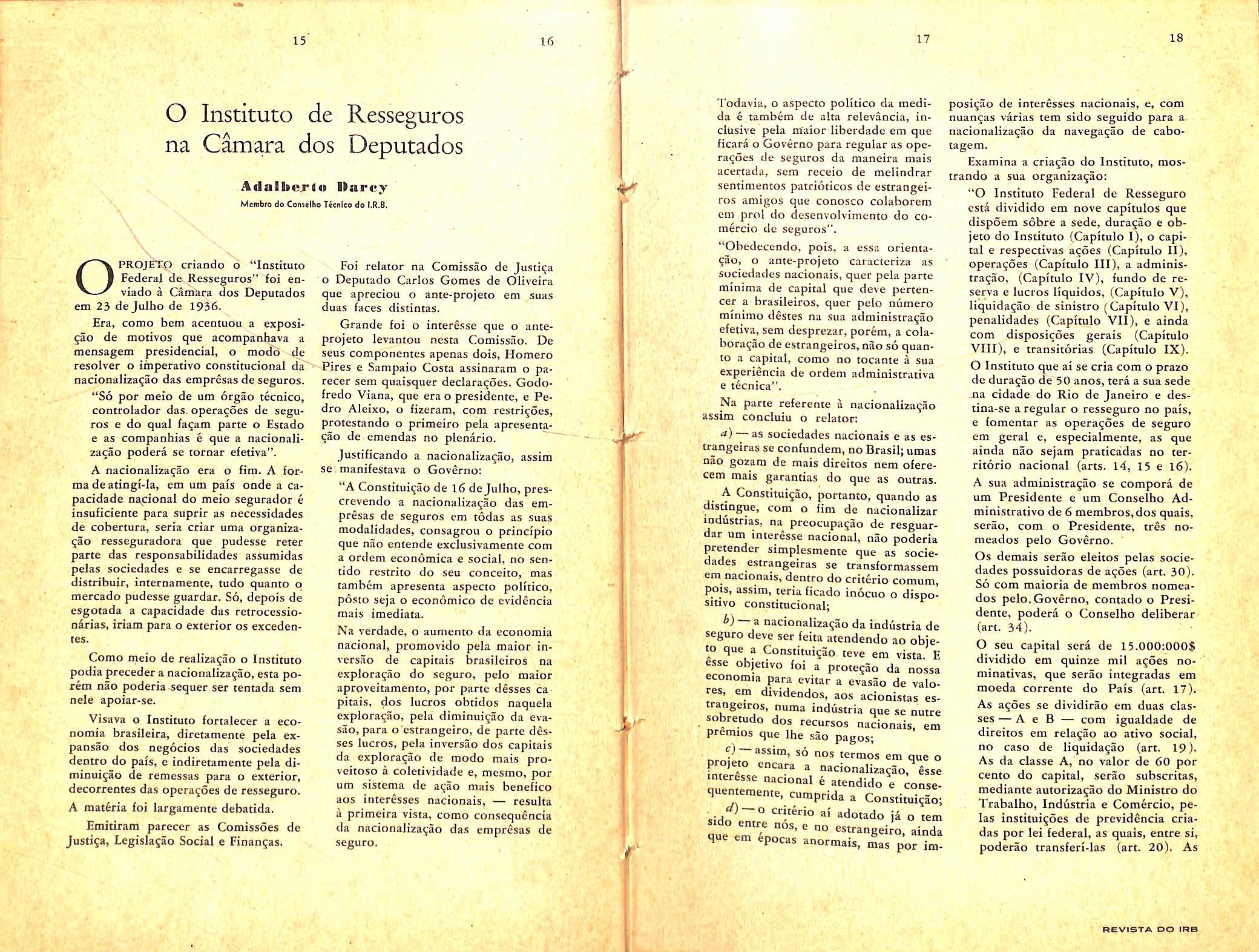 Federal de Resseguros" foi enviado a Camara dos Deputados em 23 dejulho de 1936.