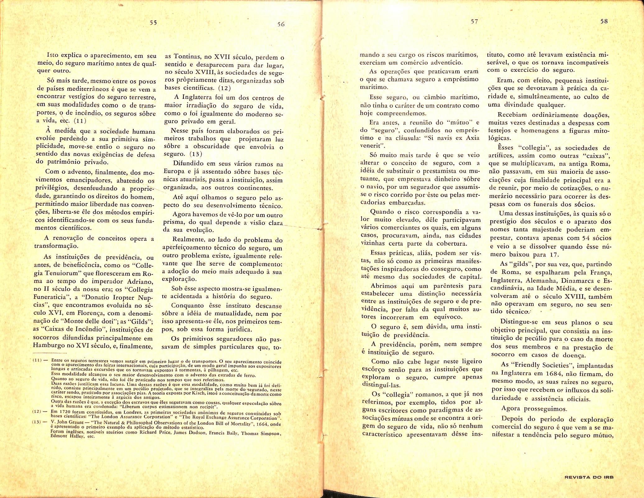 Histdrico, Edmundo Perry — O Instiluto de Resseguros na Camara dos Depu< tados, Adalherto Darcy — Recursos de um graude Instituio. Armenio Fontes — Como via e como vejo o Instituto de Resseguros, Otavioda Rocha Miranda —Necessidade do conhecimeato do seguro, Alvaro da Silva Pereira — A elaboragao dos Estatutos do IRB, Carlos Metz — Historico do seguro privado,J, Pereira da Silva — Comentirios;