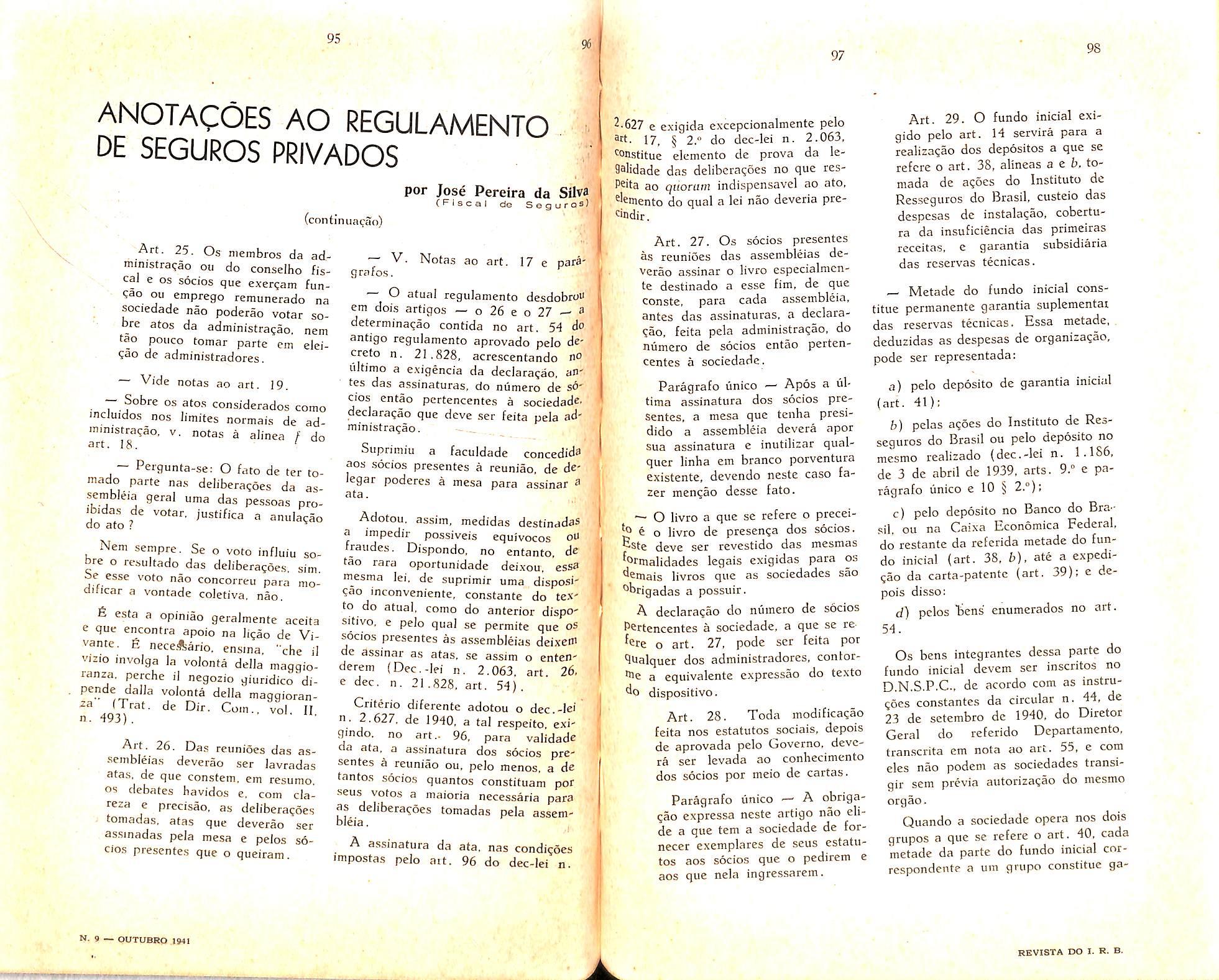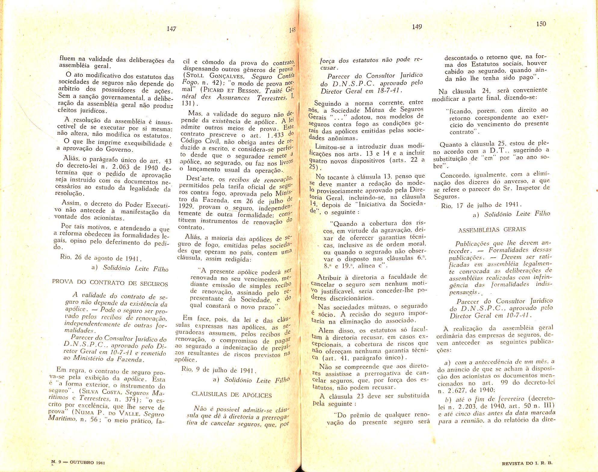 Fistonomia do Risco, Jose Pereira da — A retrocessao do I. R. B., Teixeira—Aspectos das liquidajoes sinistros incendio, Jose F. R. Barbosa As varias tonelagens dos navies, Rossner — Debates tecnicos — Cons®" lidacao das Normas, Instrugoes e Circulaf® do I. R.B., Paulo B. Jacques—ObTiga^° da seguradora, quando existem omiss^ ou falsidades praticadas de boa R P®'® gurado, na declaragao do risco, JoSo cente Campos —Morte do segurado ^ consequencia de ato praticado pelo befl«ficiario-homiddio, Amilcar Santos tasoes ao regulamento de seguros privad<»' Jose Pereira da S//va — TradufO®® transcrigoes — Pareceres e decisoes cion^o de Segurds, Amilcar Santos Bibliografia —Notid^rio--Abono de milia e aumento bienal.